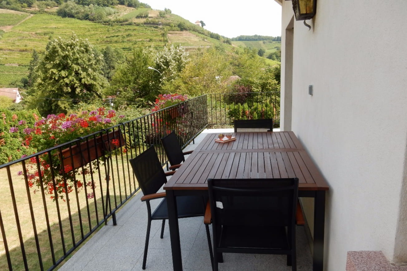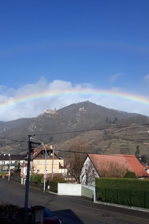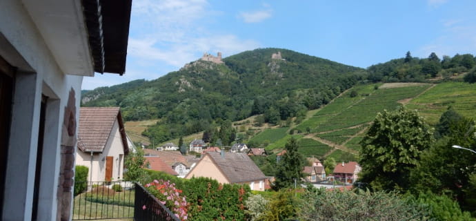 In un ambiente tranquillo, ai piedi dei 3 castelli tutelati di RIBEAUVILLE, vi accogliamo in una magnifica casa a un piano con cortile e terrazza, da cui potrete godere di una vista ininterrotta sui castelli di Saint Ulrich e sul Castello del Giersberg.