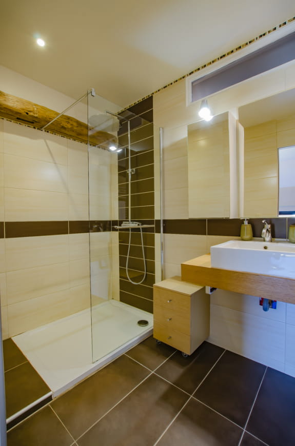 Al piano terra, l’alloggio dispone di un soggiorno con zona salotto/TV, zona pranzo e cucina a pianta aperta. Al piano superiore si trovano una zona relax, una suite padronale (2 letti singoli 90×200 che possono essere trasformati in un letto matrimoniale 180×200) con bagno privato, una camera con 2 letti singoli 90×200 che possono essere trasformati in un letto matrimoniale 180×200, un bagno con doccia e un WC separato.