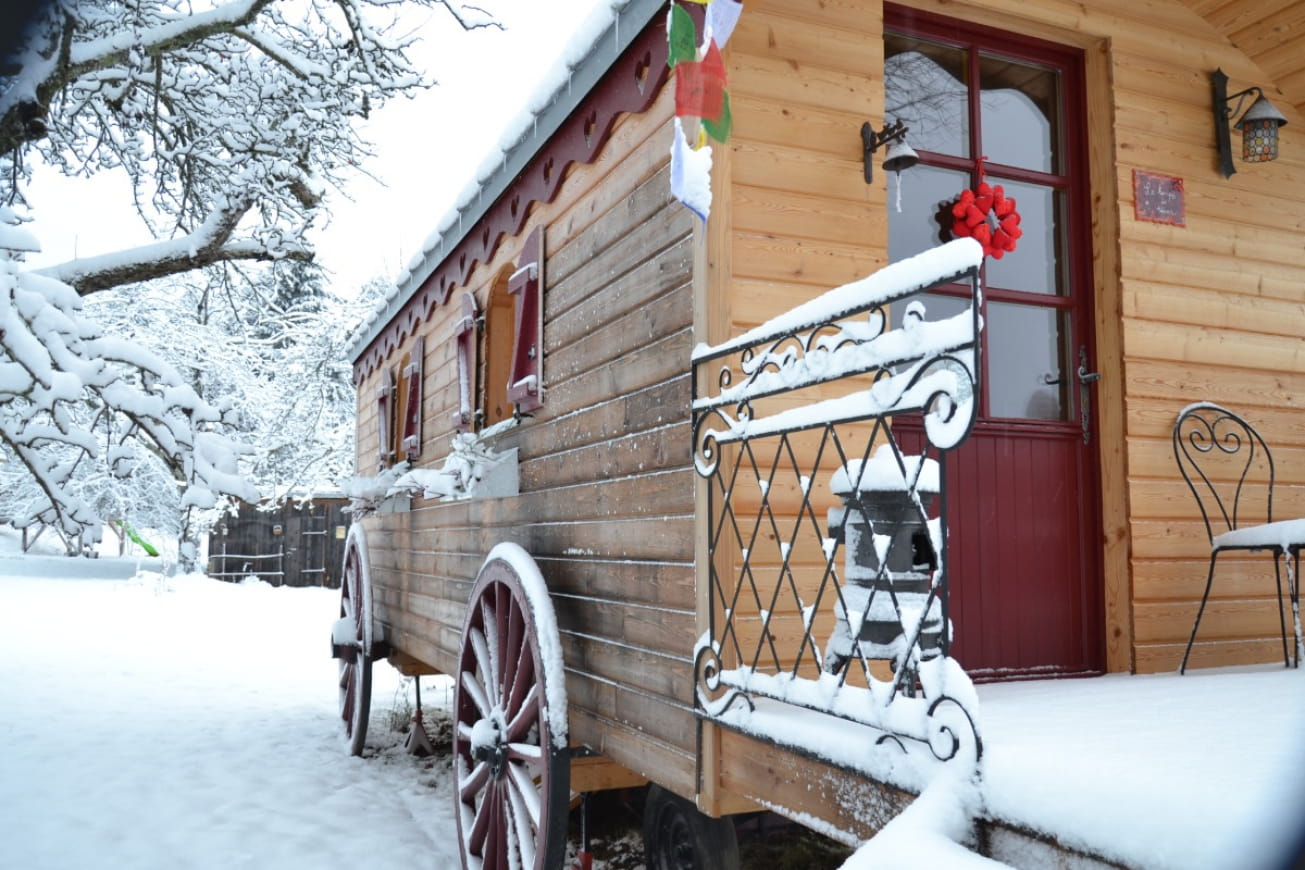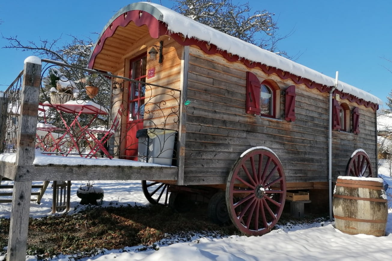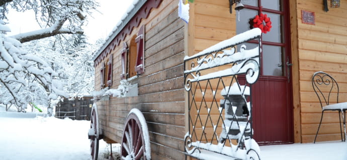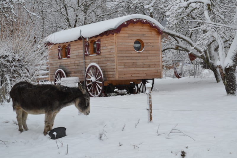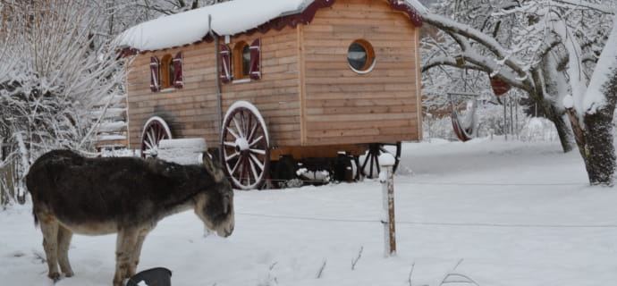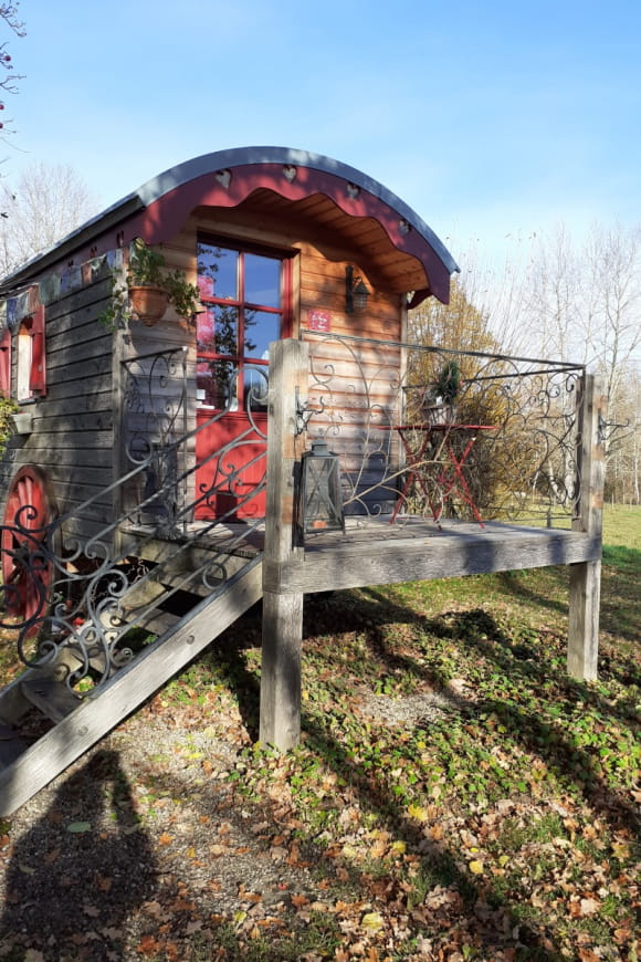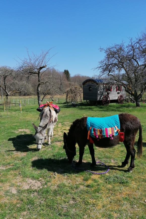 Nel cuore del villaggio di Saint-Michel, circondato da galline e asini, venite a scoprire la nostra graziosa e confortevole roulotte in legno!