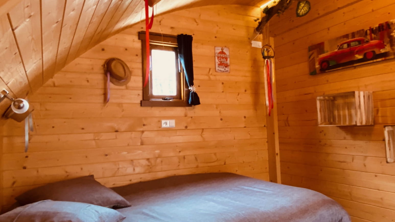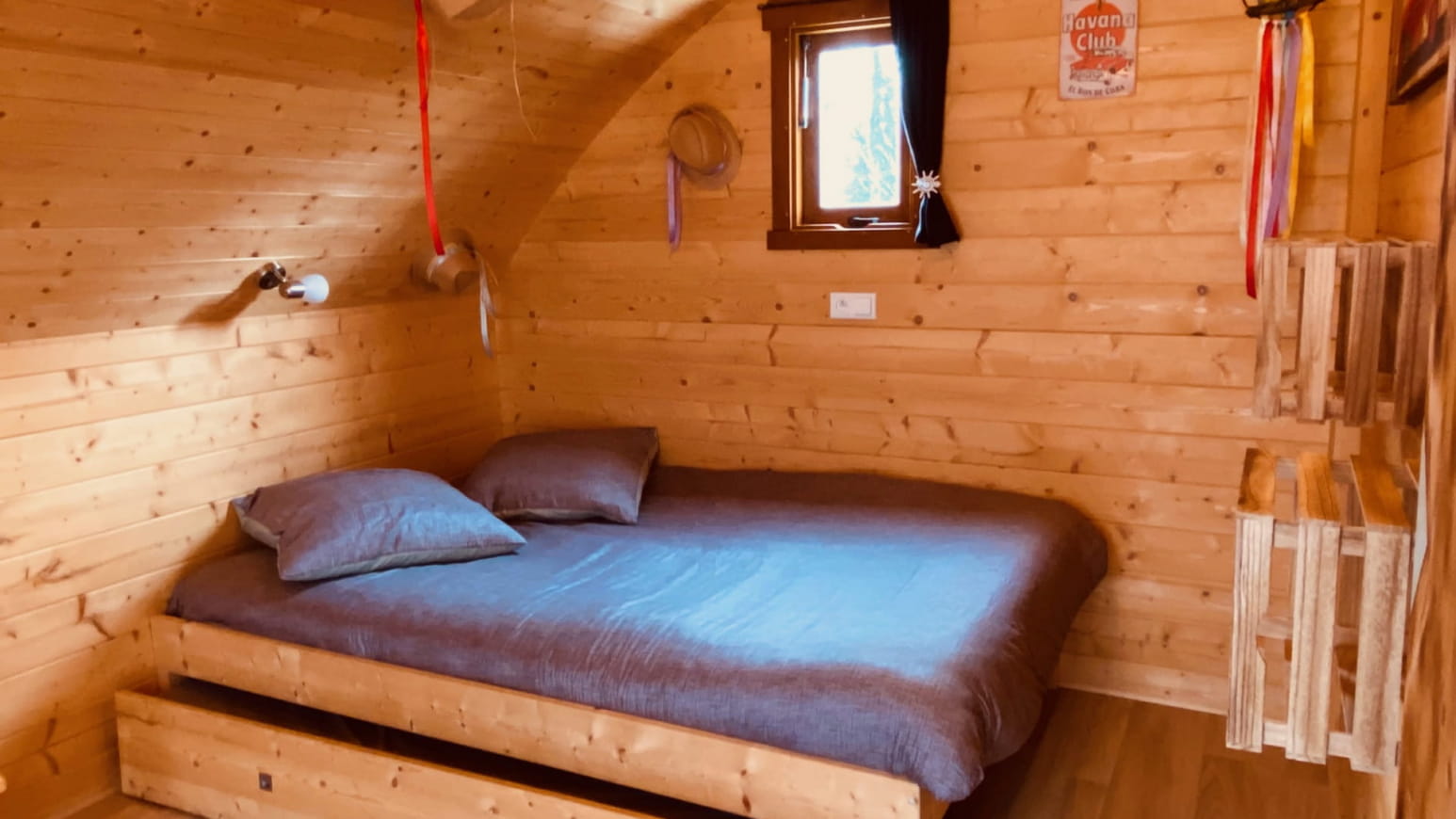 La camera da letto dispone di due comodi letti per un massimo di tre persone. Così potrete trascorrere piacevoli momenti da soli, in coppia, con gli amici o in famiglia. Il Lodge Insolite Havana è accessibile anche alle persone con mobilità ridotta.