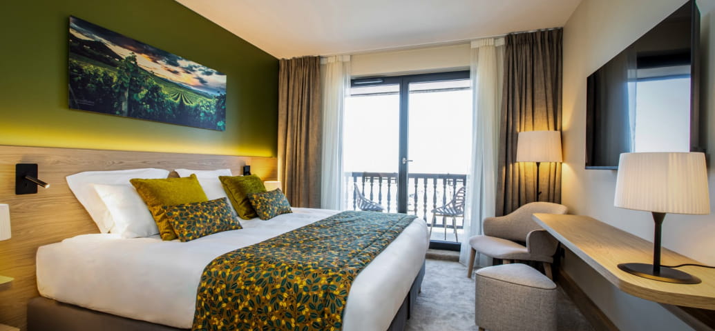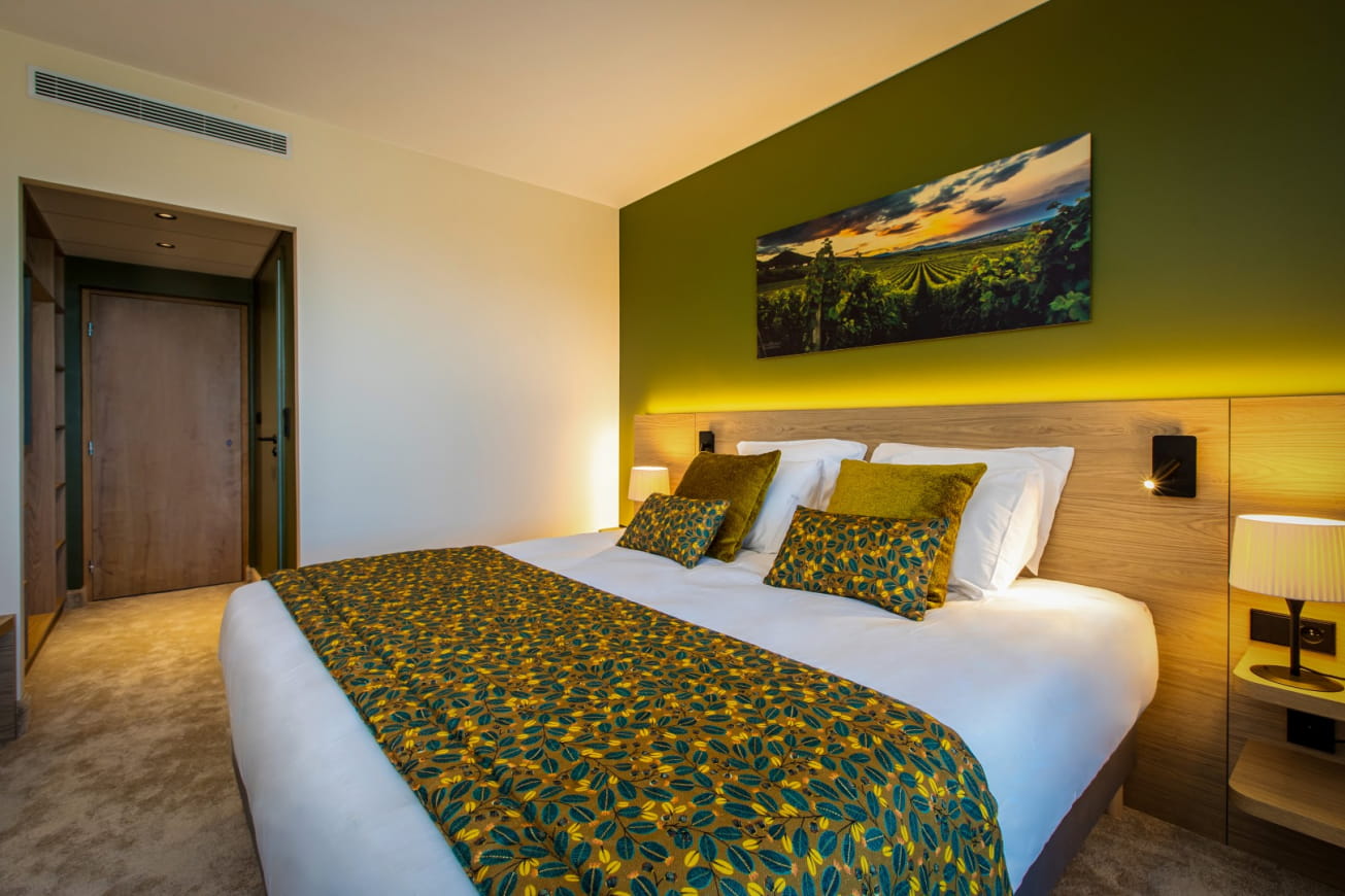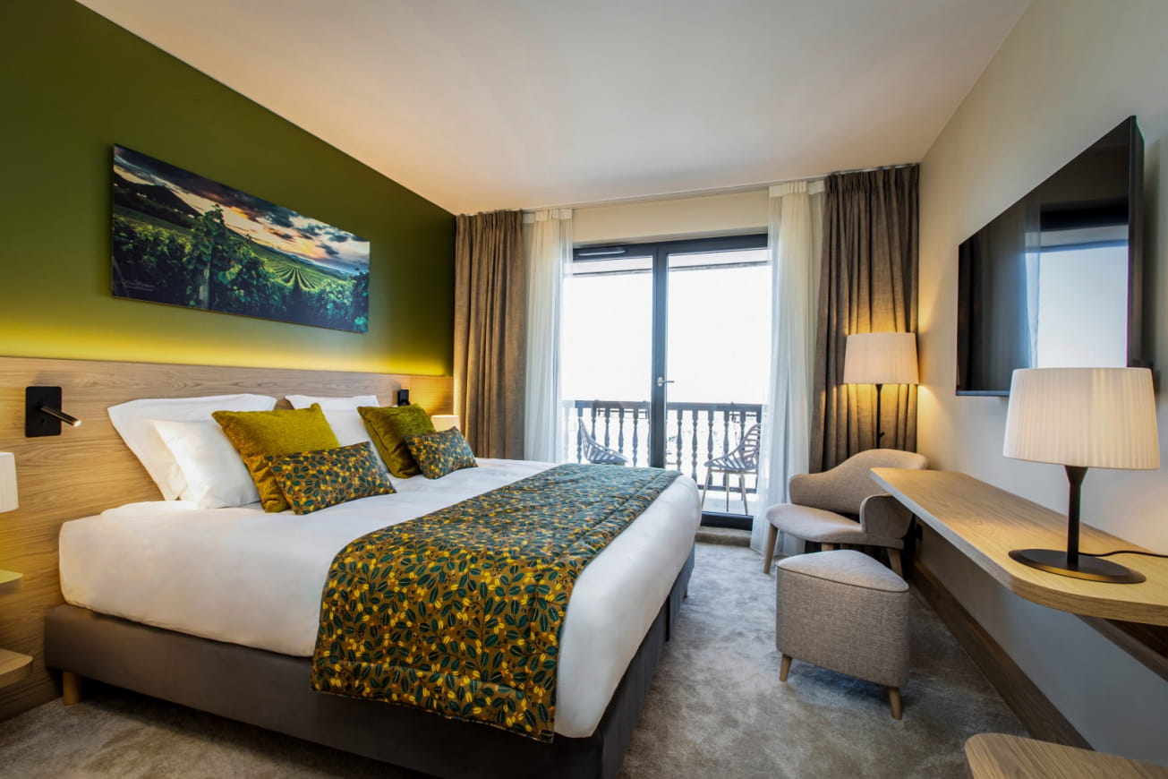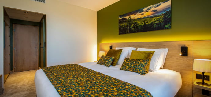 Situato in una tenuta di vigneti e meticolosamente rinnovato nel 2025, l’hotel vi invita a godere di un soggiorno rilassante in un ambiente raffinato e caldo ispirato alla natura e alle materie prime. Qui ogni spazio invita al relax. Al mattino, gustate una gustosa colazione a base di prodotti locali in una luminosa sala o sulla terrazza con vista sui vigneti. Poi rilassatevi nell’area benessere di 200 m² (la cui apertura è prevista per luglio 2025). In programma: bagno turco, sauna, piscina e area relax con tisaneria. Un’atmosfera soffusa e minerale vi avvolge per un momento di vero relax.
