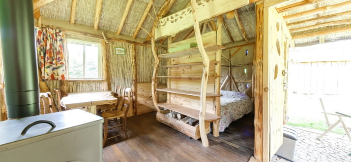 - Construction 100% naturelle faite de terres, bois, pailles, bruyères et roseaux