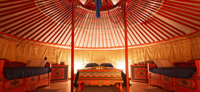Quando entrate nella yurta, vi attende uno spazio caldo e accogliente. In grado di ospitare fino a 4 persone, offre tutto il comfort unito all’autenticità di una yurta tradizionale mongola. Per far fronte al caldo dei mesi estivi, un innovativo sistema di ventilazione e un ventilatore vi manterranno freschi.