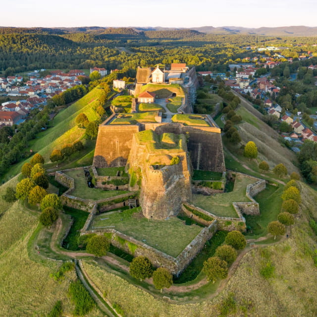 Construite au sommet d’un promontoire rocheux, la Citadelle de Bitche surplombe littéralement la ville en contrebas. Cette forteresse militaire, remaniée par Vauban, témoigne des grands tournants de l’Histoire et symbolise aujourd’hui la paix retrouvée. Explorez ses souterrains et revivez les grands conflits qui secouèrent l’Europe.