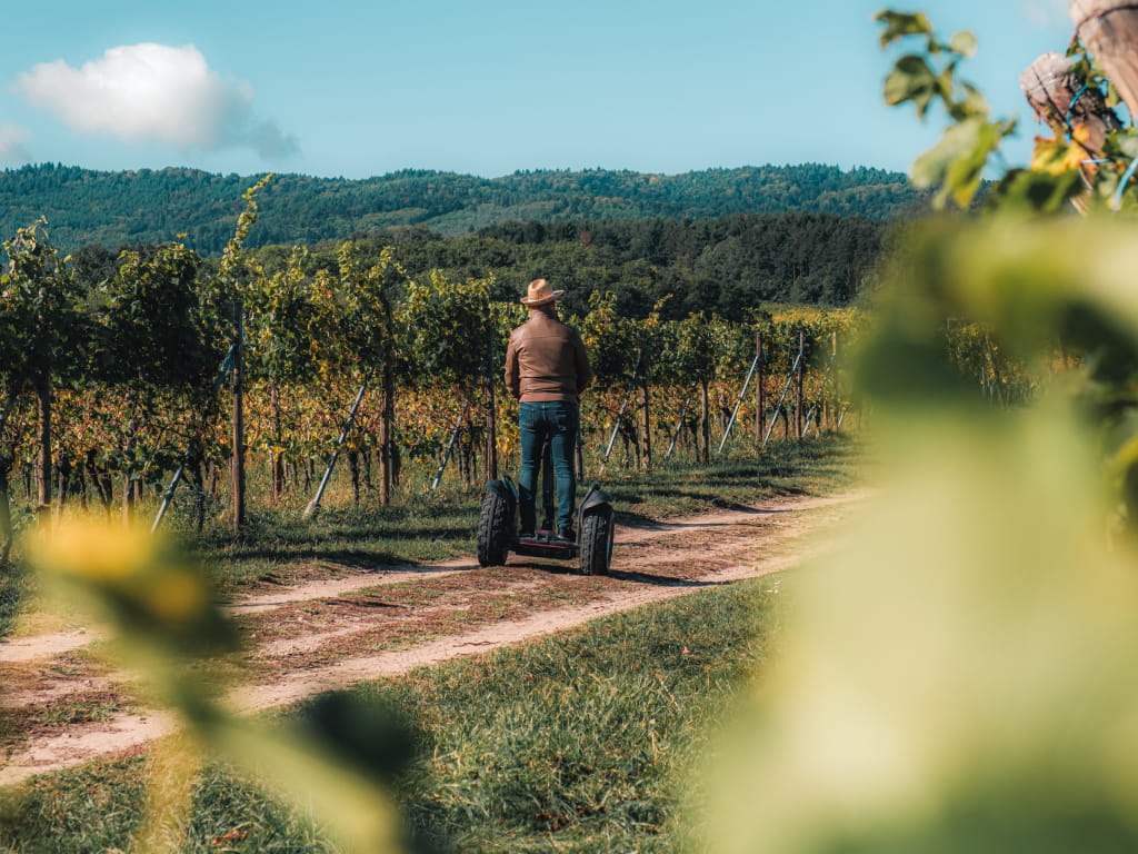 Plutôt vélo, segway, solex, ou trottinette électrique ? Après avoir choisi notre bolide favori, on s'apprête à arpenter les vignobles du Grand Est, une activité idéale à l’automne. Les rayons du soleil nous boostent tandis que la douceur de l’air nous rafraîchit ! Tranquillement, on se balade à travers des vignobles aux couleurs changeantes : tantôt orange, tantôt rouge, où l’on retrouve parfois du vert, c’est un vrai spectacle vivant qui défile sous nos yeux. En compagnie d’un guide, on fait plus ample connaissance avec ces territoires aux multiples facettes. De l’exploration du travail de la vigne au processus de fabrication, c’est une nouvelle façon de découvrir les richesses du Grand Est, toujours à notre rythme.