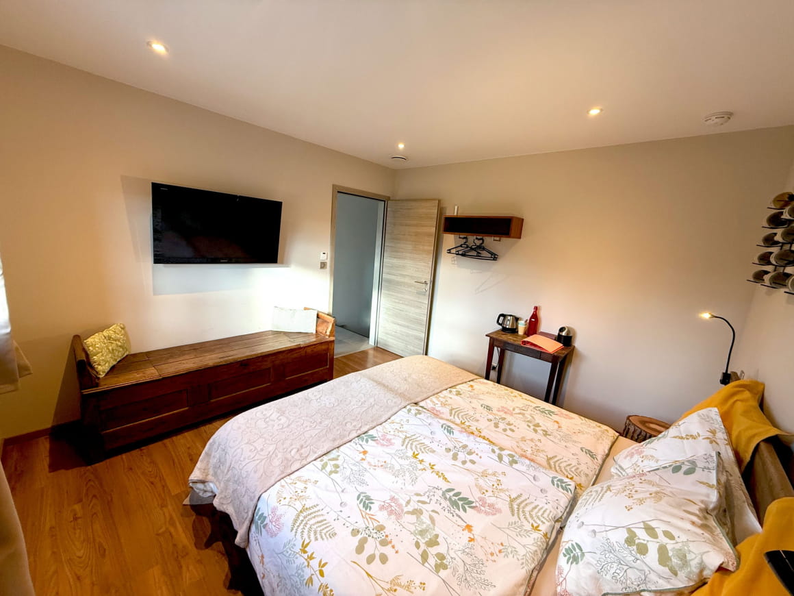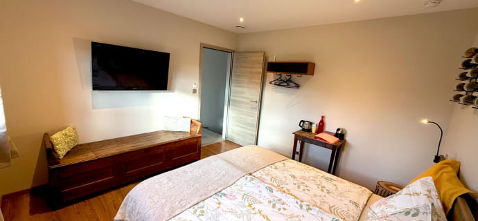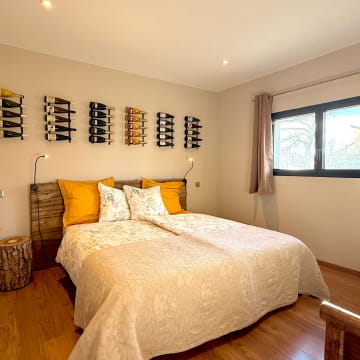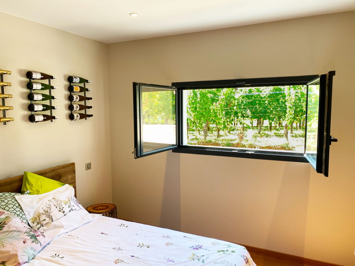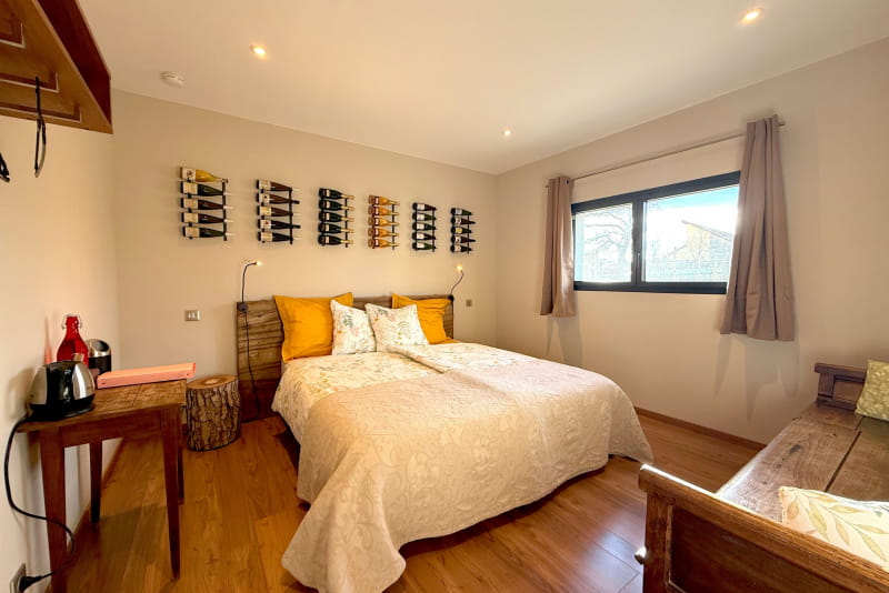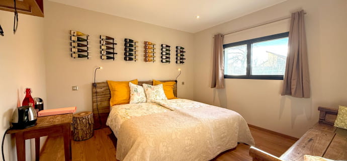 Neem plaats in een gastenkamer met een decor geïnspireerd door de kunst van de wijnbouw, waar elk detail herinnert aan de passie en expertise van het domein. Geniet van een gezellige, authentieke omgeving, met als bonus een adembenemend uitzicht over de wijngaarden.