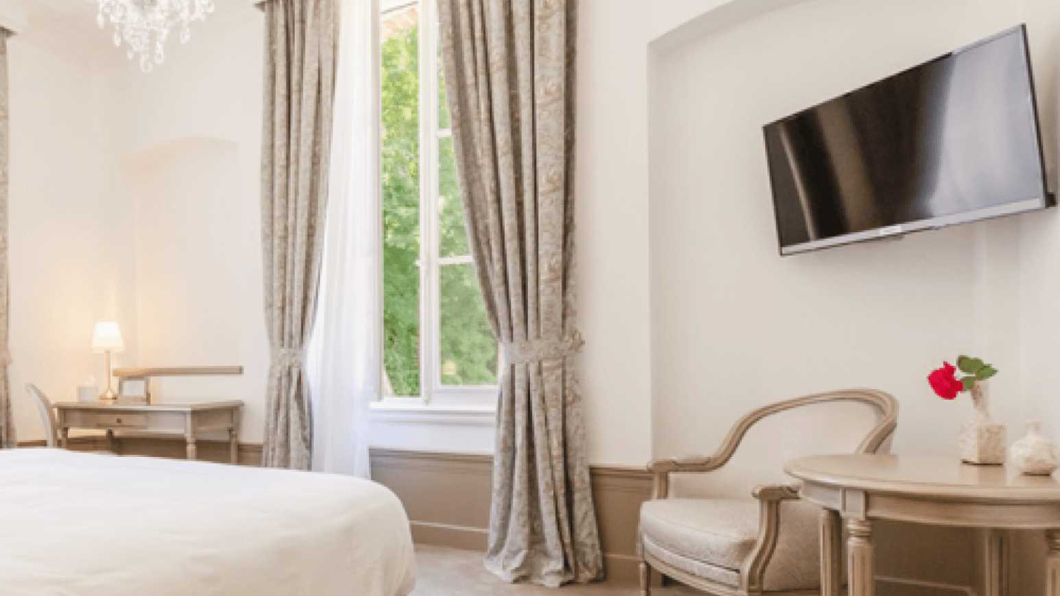 Het Château de Montabertverwelkomt u in een prachtig gebouw dat volledig gerenoveerd is. Er zijn drie superieure kamers beschikbaar, één op de begane grond en de andere tweeop de eerste verdieping. Elke kamer is zorgvuldig ingericht in Lodewijk XVI-stijl met antiek meubilair, kroonluchter en draperieën. Deze ruime en volledig geluiddichte kamers zijn perfect ingericht om uw comfort tijdens uw verblijf te garanderen. Ze zijn onder meer uitgerust met een kingsizebed en een bank. Ze hebben een moderne privébadkamer met een ligbad.