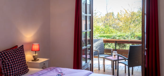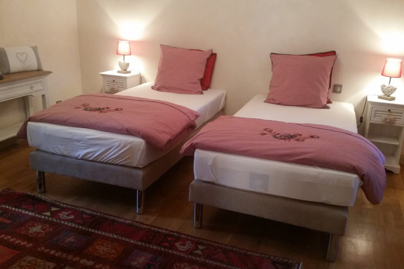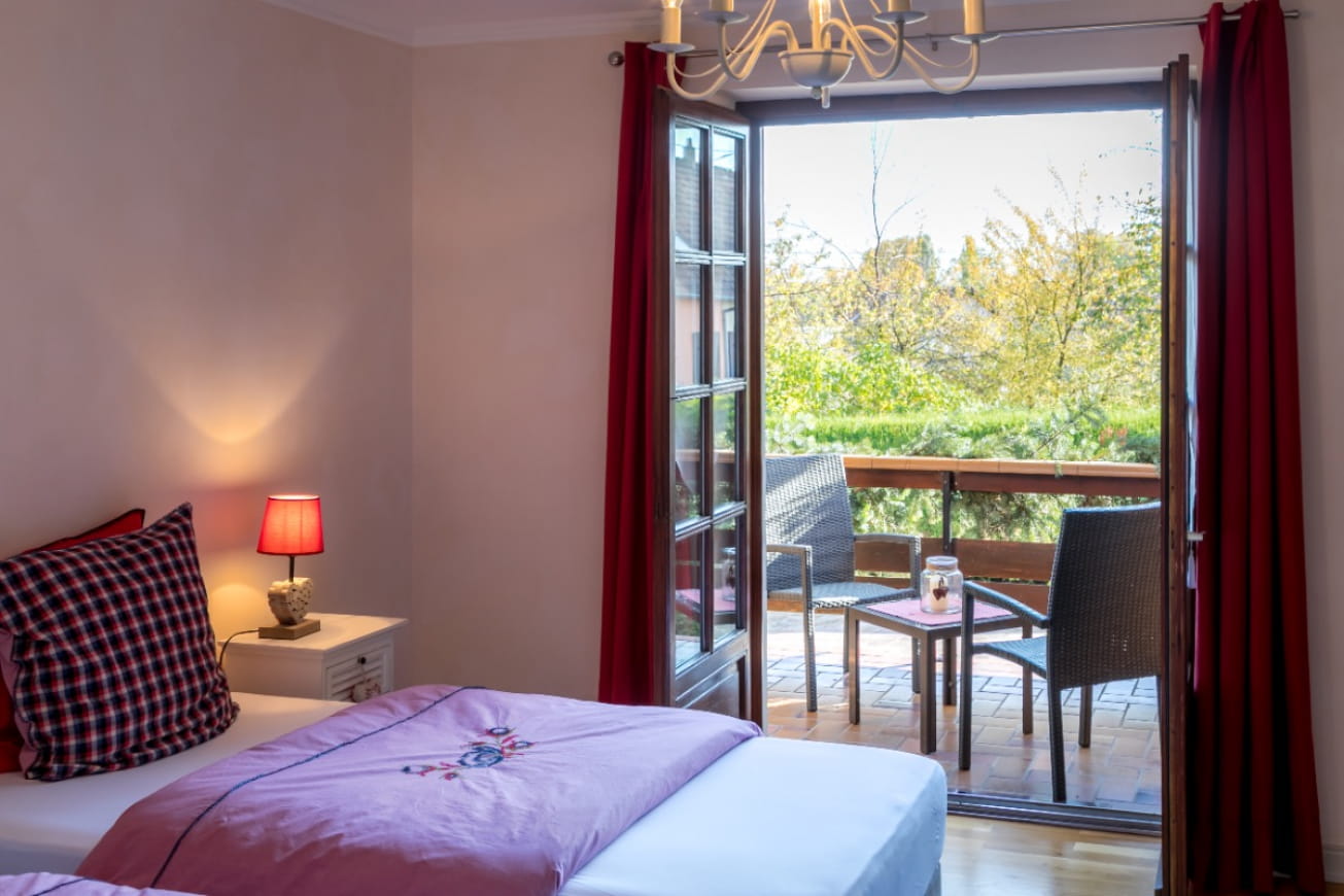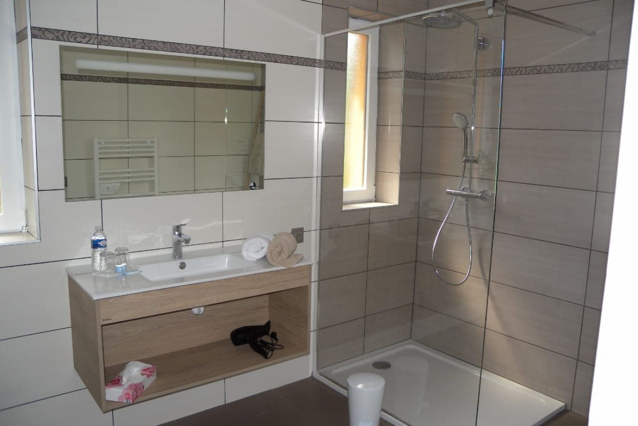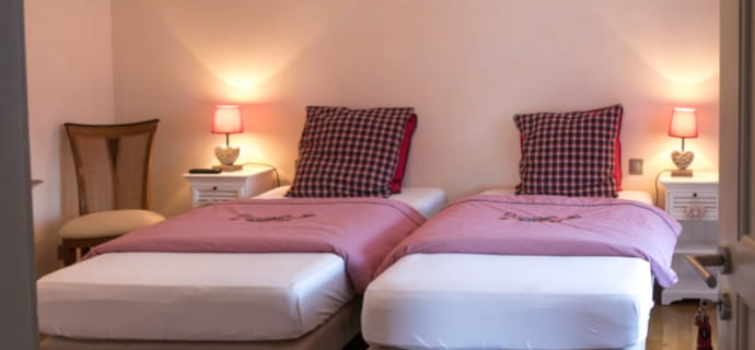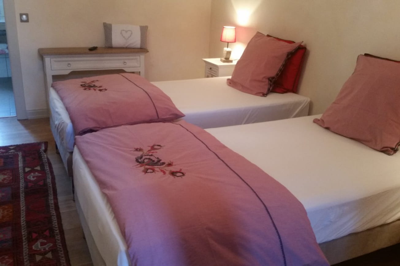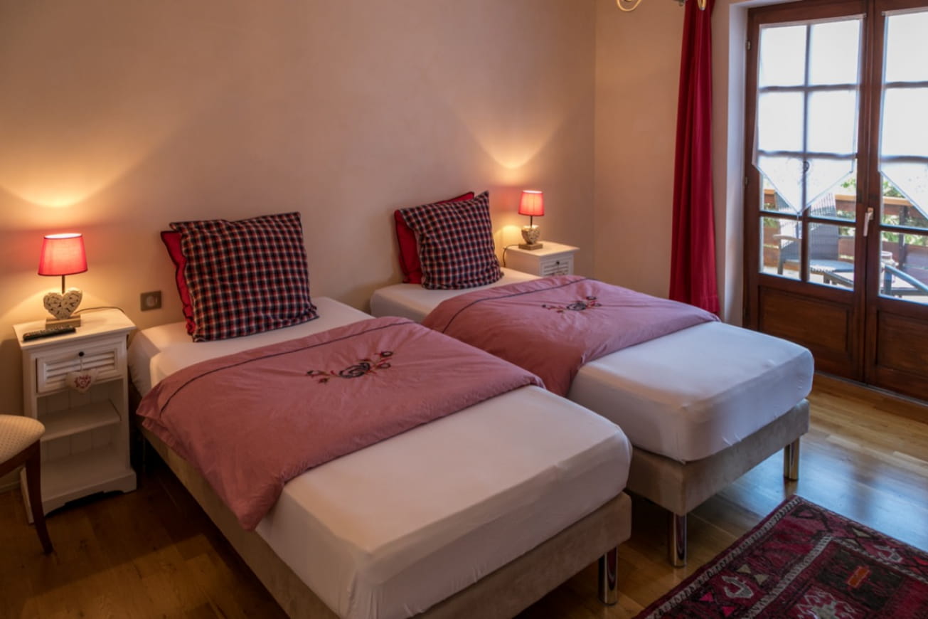 Je verblijft in de Coeur d’Alsace kamer op de begane grond van het huis, met een eigen terras. Het heeft een eigen badkamer met wc, en een tweepersoonsbed (200×200) of twee aparte bedden (100×200).