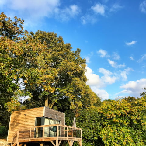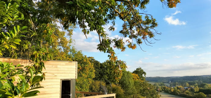 De Écureuil hut staat op palen en biedt een adembenemend uitzicht op de Petit Morin vallei. Als je op zoek bent naar romantische momenten onder de sterren, dan is dit de perfecte accommodatie!