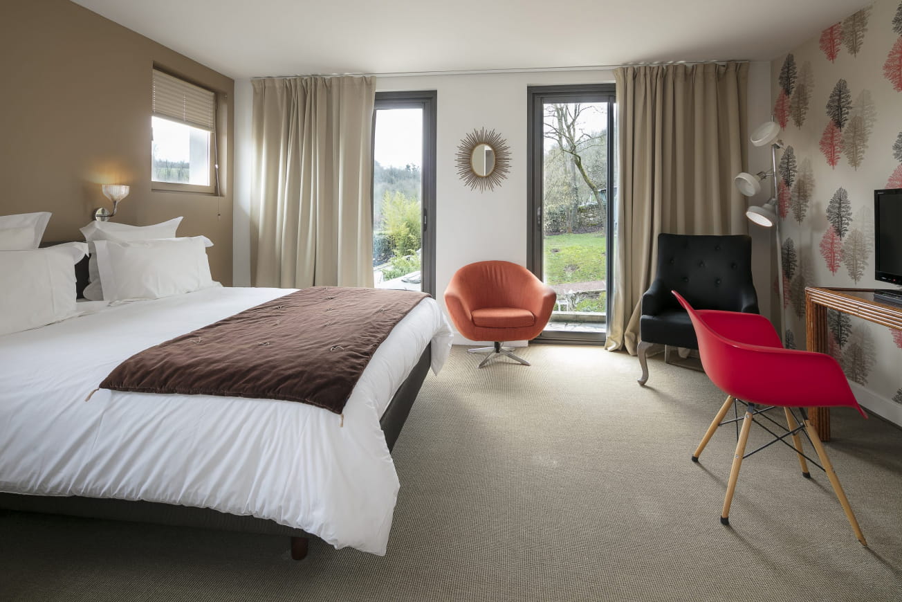 Zodra deze symfonie van smaken is voltooid, trek je je terug in de privacy van je tweepersoonskamer en geniet je van een moment van rust voor twee. De sereniteit van Le Clos Jeannon zal u teder omhullen en u een vredige nachtrust vol welzijn bezorgen.