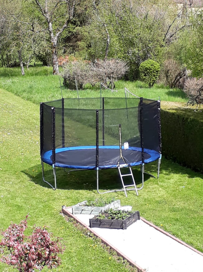 - Een grote groene ruimte en een trampoline om van de buitenlucht te genieten