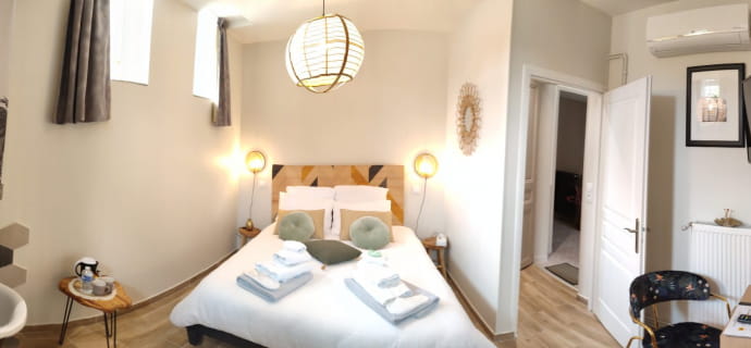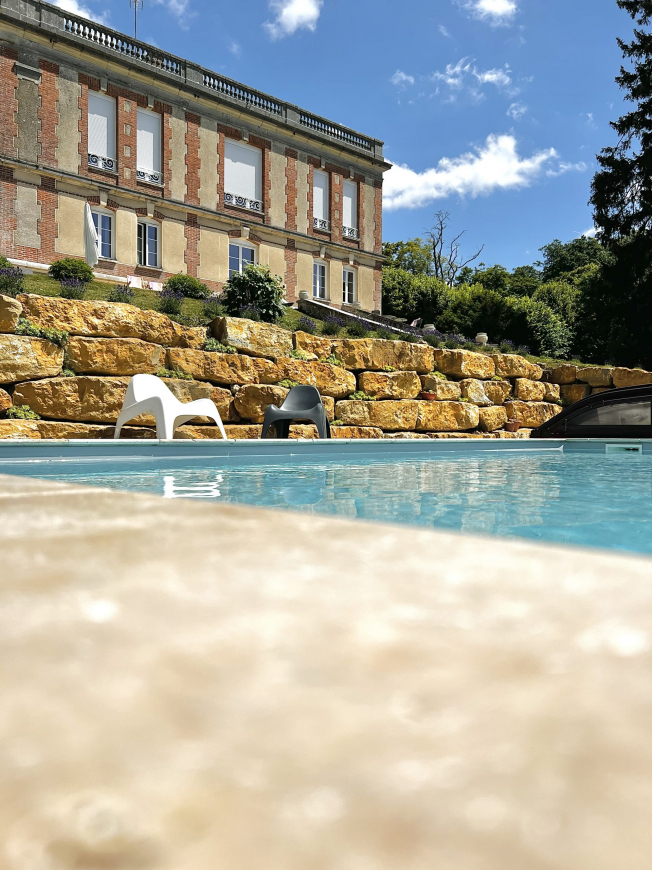 Gastenverblijf voor maximaal 14 personen gelegen in Montmirail in het departement Marne, met 3 slaapkamers en 3 ongebruikelijke accommodaties. Dit voormalige herenhuis uit 1889 is volledig gerestaureerd. De kamers bieden een adembenemend uitzicht over de Petit Morin vallei. Het huis heeft een zwembad dat overdekt kan worden, 2 hectare bebost park en een parkeerplaats voor de gasten. De kamers zijn voorzien van airconditioning. De prijzen zijn inclusief ontbijt. Lunchpakketten kunnen ter plaatse worden besteld.