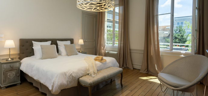 Bed en breakfast met karakter gelegen aan de voet van de kathedraal van Reims. 4 kamers, grote tuin, wellnessruimte (privétoegang). Gastronomisch ontbijt (streekproducten).