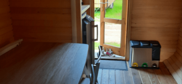 Hoewel de ton een volledig uitgeruste kitchenette heeft, is er geen watertoevoer en dus ook geen badkamer of toilet. De sanitaire voorzieningen van de camping bevinden zich op 30 meter afstand. Er is een terras aan één kant, zodat je van de buitenlucht kunt genieten. Er is parkeergelegenheid naast de camping.