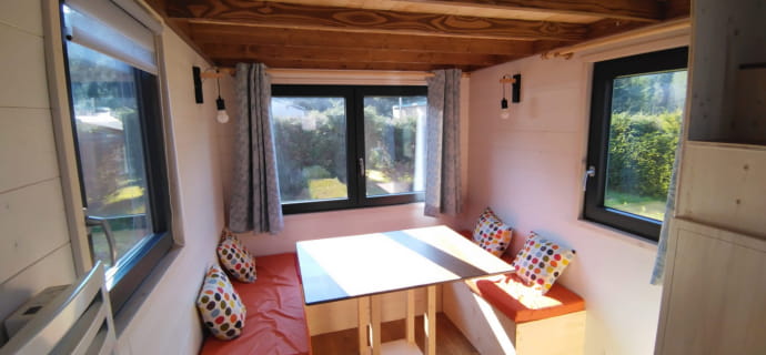 Om je een unieke ervaring te geven, heeft de camping een arrangement op maat samengesteld. Verblijf 2 dagen en 2 nachten in een tiny house, een ongewone accommodatie die soberheid en comfort combineert. Laat je meeslepen door de bosrijke sfeer, laat je gaan… en laat het campingteam voor de rest zorgen! Van accommodatie tot activiteiten en catering, voor alles is gezorgd.