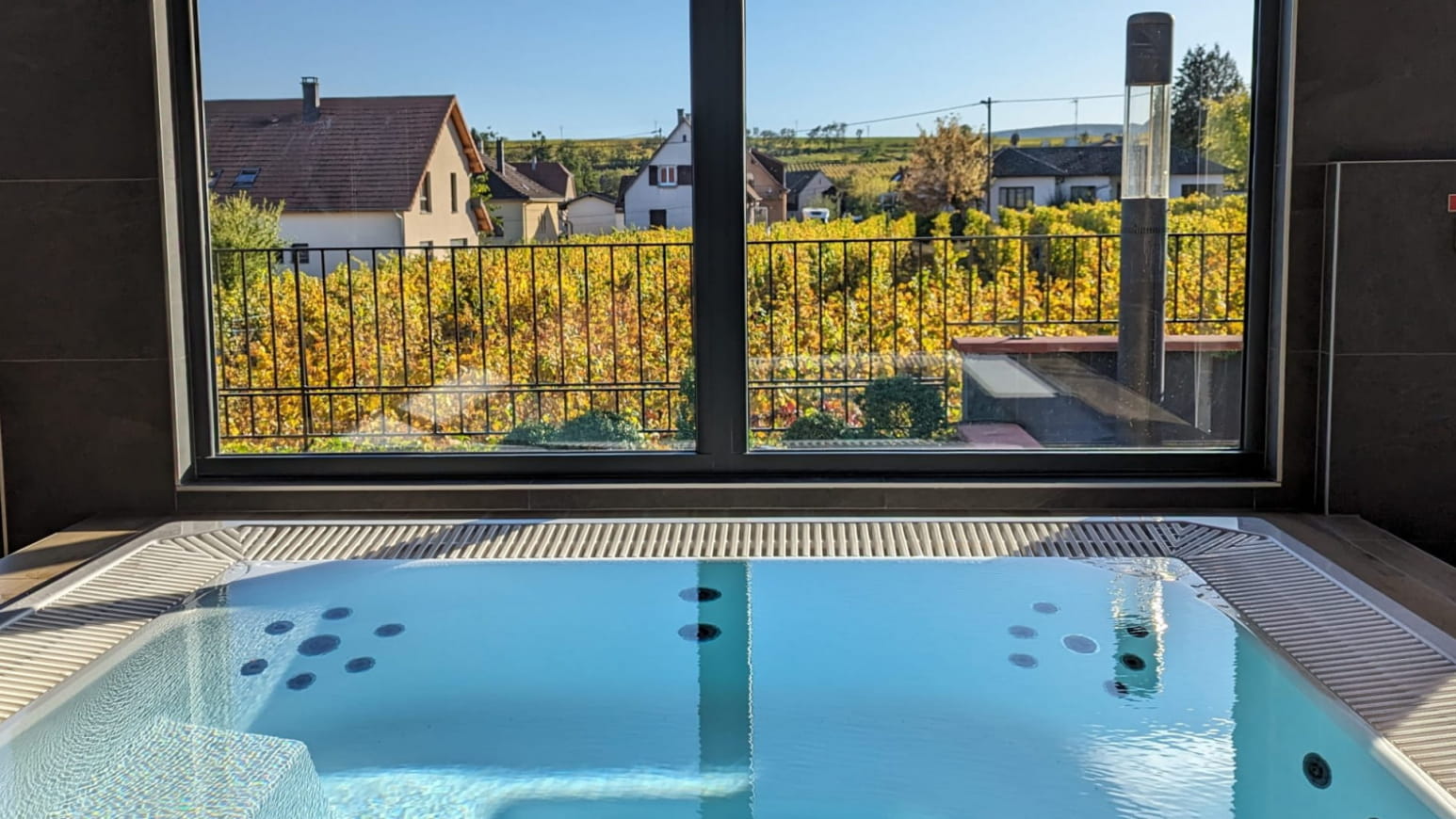 - Een ontspanningsruimte met een barrelsauna, een jacuzzi en een overdekt zwembad verwarmd tot 35°.