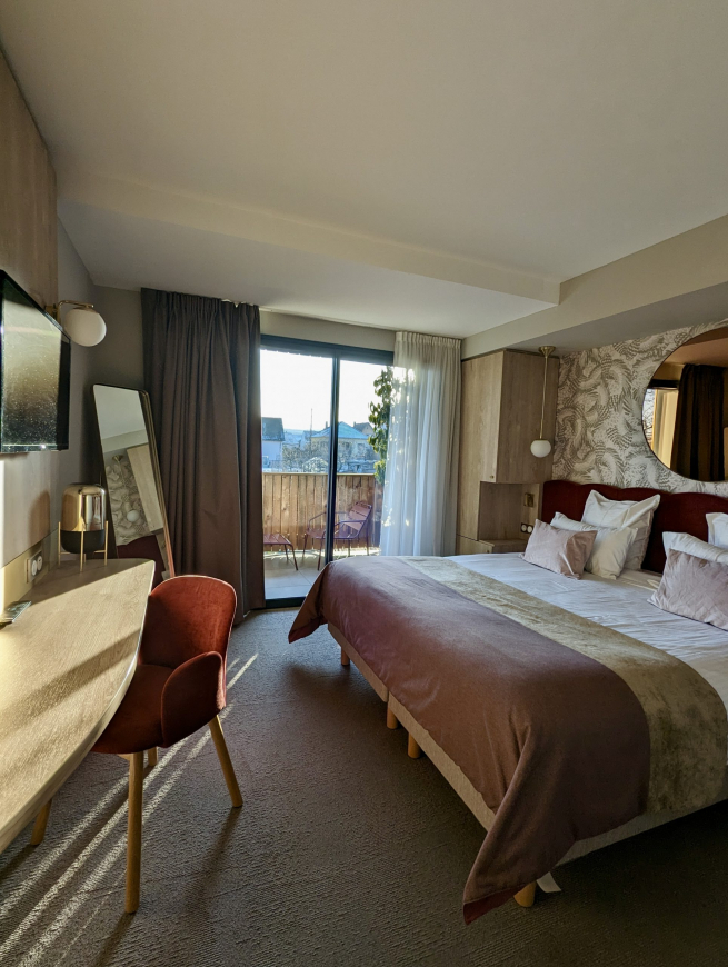 Het 4-sterren James Vignoble Hôtel werd in 2025 uitgebreid en gerenoveerd. Met het welzijn van de gasten in het achterhoofd staat het garant voor een warm welkom en moderne faciliteiten. De kamers zijn even chic als comfortabel, met een verfijnde inrichting.
