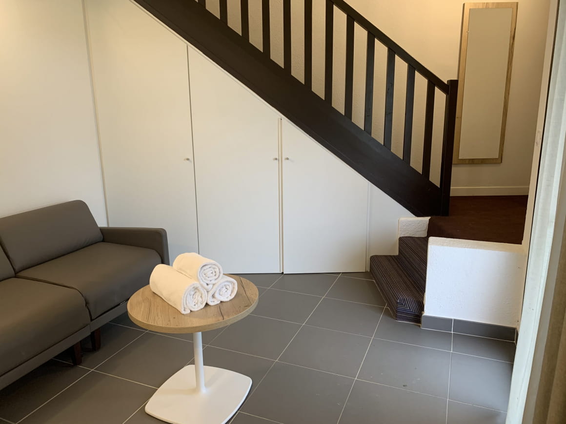 Binnen vind je een woonkamer met een comfortabele sofa, een moderne badkamer met een inloopdouche, een apart toilet en alle voorzieningen die je nodig hebt voor je verblijf. De duplex heeft airconditioning voor je comfort. Boven wachten een grote slaapkamer met een bed van 160 x 190 en een slaapkamer met twee bedden van 90 x 190 op je. Beide slaapkamers hebben een flatscreentelevisie met DTT-zenders.