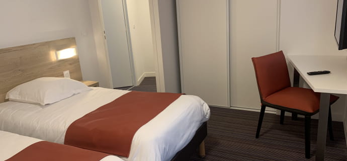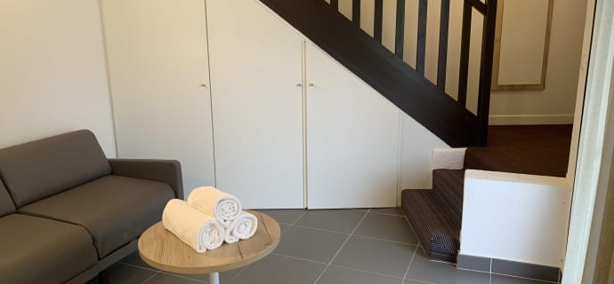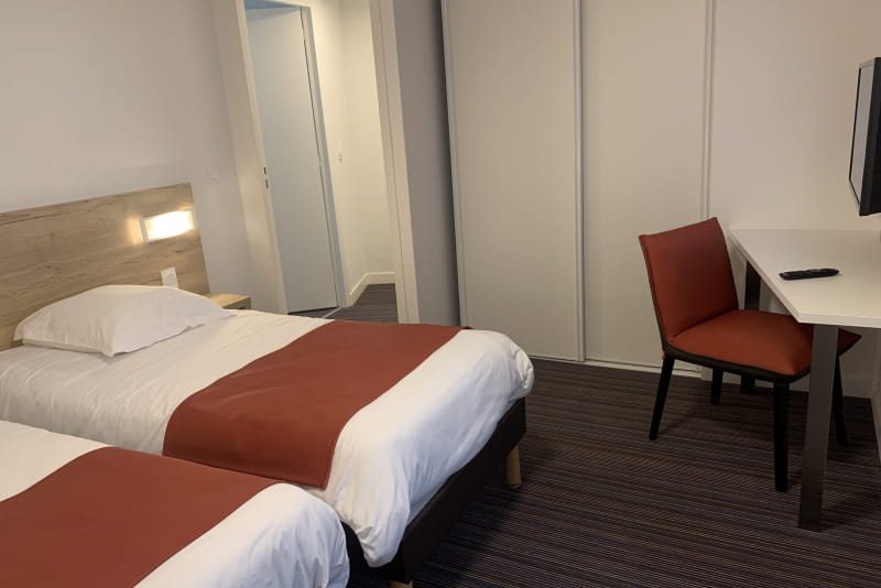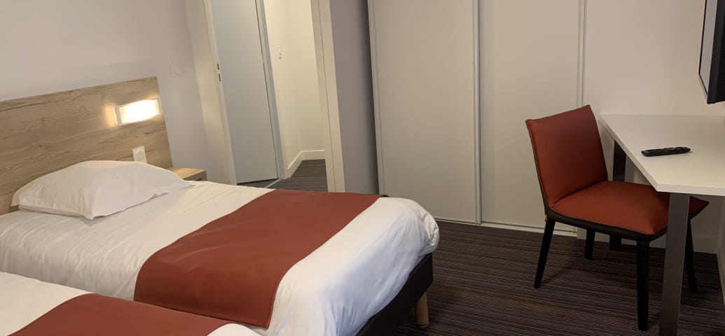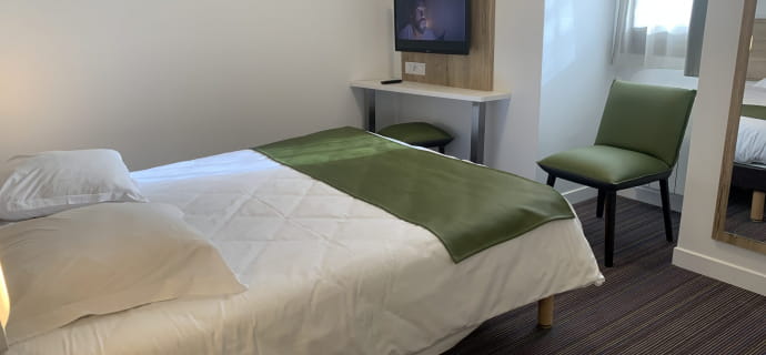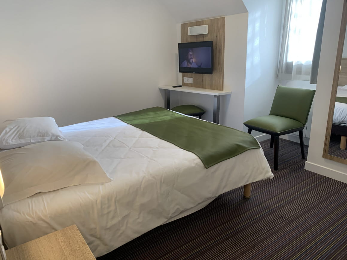 Ons hotel is in 2019 volledig gerenoveerd en beschikt over 60 kamers met één verdieping en een prachtige duplex van 66 m². Deze laatste zal u charmeren met zijn uitzonderlijke natuurlijke omgeving, met uitzicht op ons uitgestrekte park van 2,5 hectare en zijn prachtige tuin. Geniet van het panoramische uitzicht vanaf het kleine terras van deze charmante duplex!