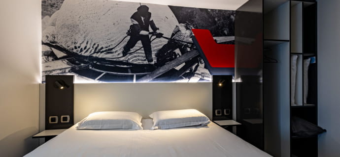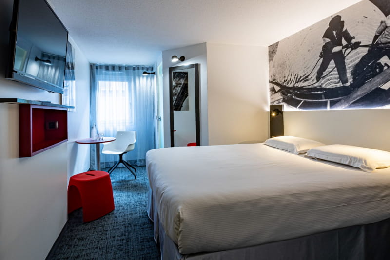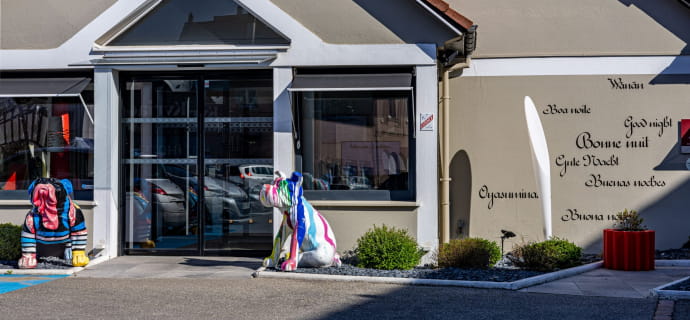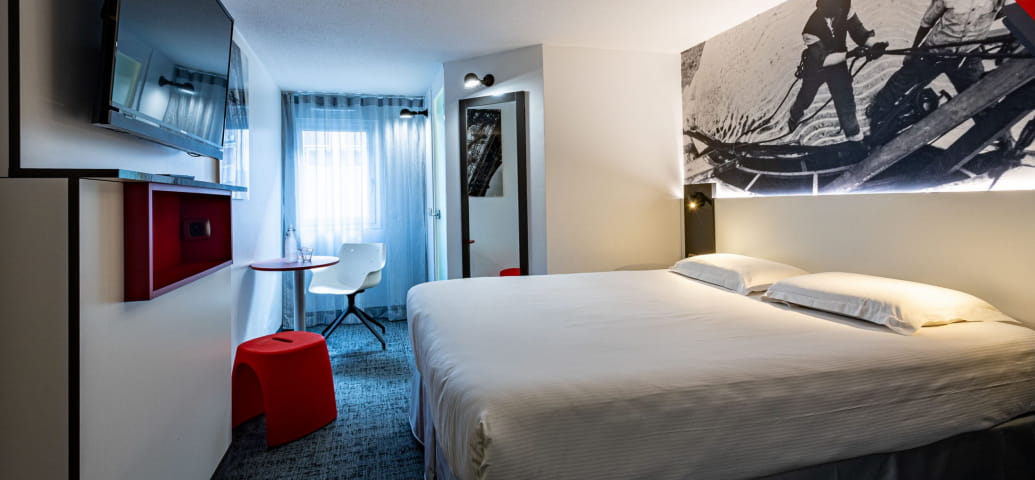 Hotel GUSTAVE is een 3-sterrenhotel, ideaal gelegen op slechts 2 minuten van het centrum van Colmar. Het verwelkomt u in een warme omgeving, met een knipoog naar Gustave Eiffel, in geluiddichte kamers met airconditioning in rood, wit en zwart, uitgerust met een dienblad, kluis en minibar.