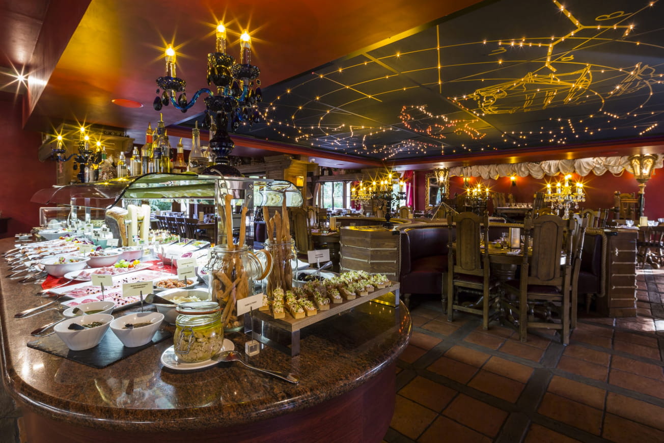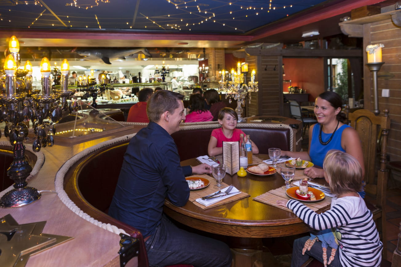 Het restaurant van Hôtel des Pirates**** verwelkomt gasten elke avond en voor de lunch op zon- en feestdagen om te genieten van de verfijnde buffetten.