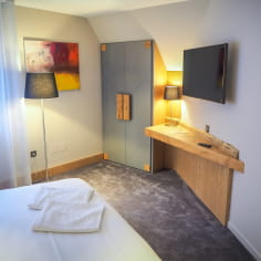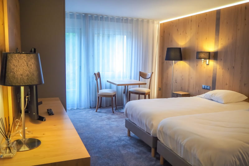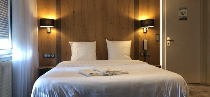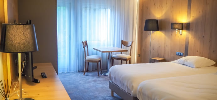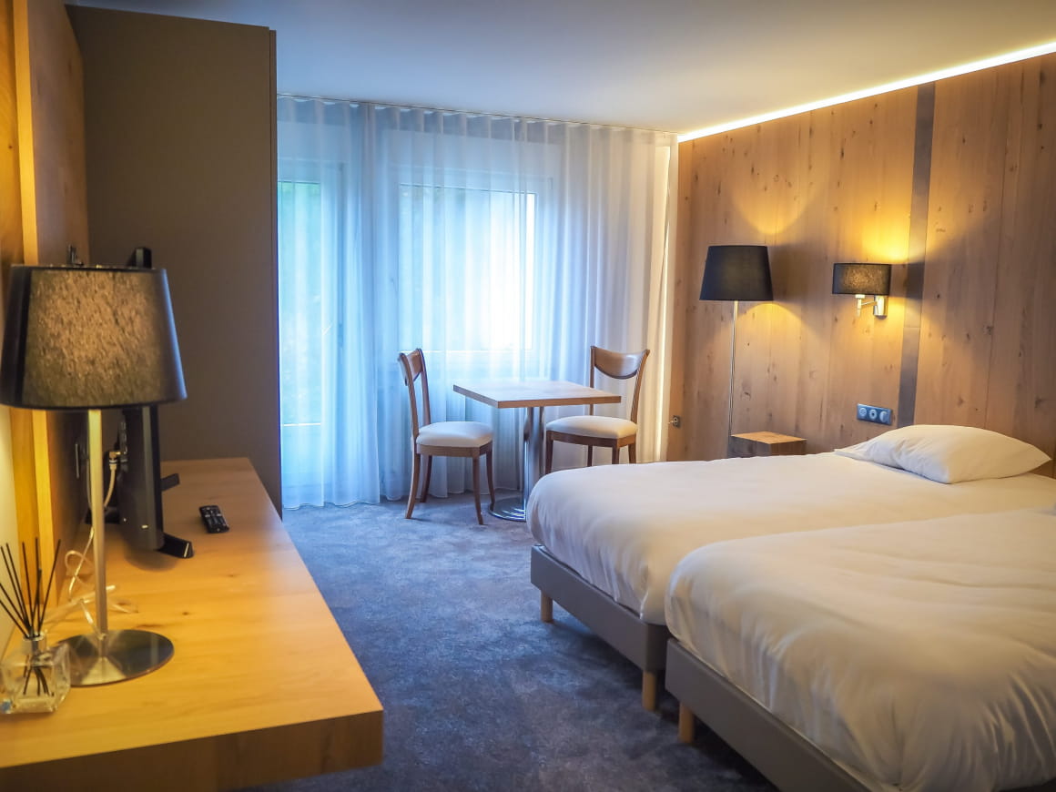 Of u nu met uw gezin, vrienden, geliefden of alleen bent, La Couronne by K heeft een reeks kamers die bij u passen. Of je nu kiest voor een Standaard, Comfort, Privilege of Suite kamer, je vindt er alles wat je nodig hebt voor een aangenaam verblijf. Elke kamer verwelkomt je in een sober en elegant decor, waar de natuurlijke tint van het hout de sfeer verwarmt. Neem de tijd om je te installeren en adem de frisse plattelandslucht in door de ramen. De omringende natuur zal je onderdompelen in een mooie bucolische omgeving.