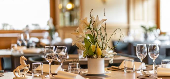 - 1 feestelijk diner (exclusief drankjes) in restaurant Au Cheval Blanc voor 2 personen op 24 of 25 december 2023 (met goochelshow aan tafel)