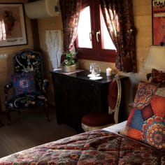 Volledig onafhankelijk van het landgoed biedt deze ongewone accommodatie alle faciliteiten die je nodig hebt voor een aangenaam verblijf. De woonwagen van 28 m² is voorzien van airconditioning, een queensize bed en een badkamer met douche en toilet. Het decor, met houtwerk van een bekende lokale vakman en muurschilderingen van een bekende lokale kunstenaar, creëert een gezellige sfeer die perfect is om te ontspannen.
