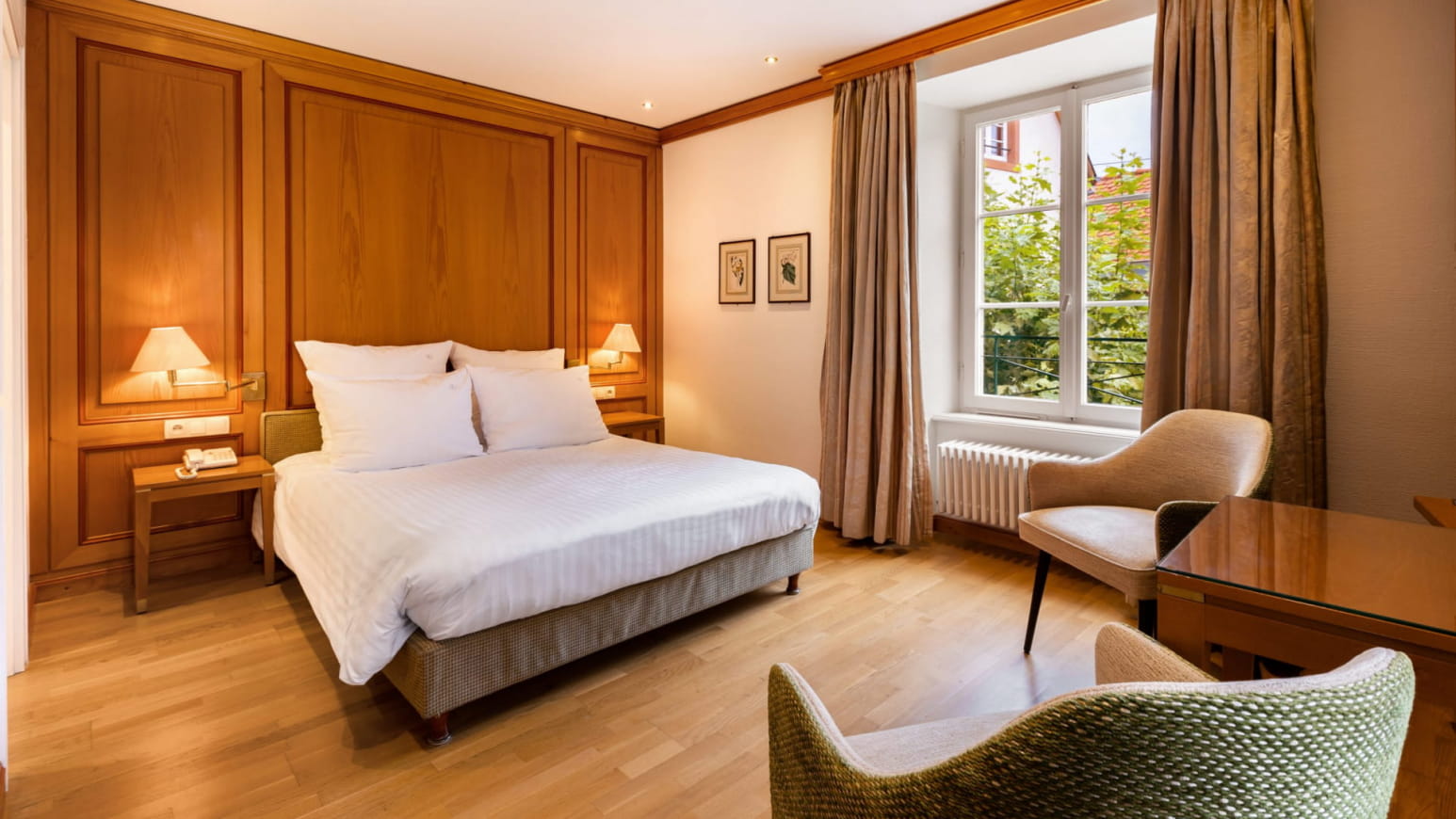 Met 51 kamers en suites biedt ons hotel een charmante en rustige omgeving in het centrum van de stad. Onze tuin ligt direct aan de stadswallen van Obernai en is een oase van rust waar je kunt ontspannen en afgesneden bent van de drukte van de stad.