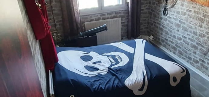 Beleef voor uw verblijf in Reims een ongewoon verblijf in het Appart Aventure! Dit ongewone appartement ligt in het hart van de stad en neemt u mee op een uitzonderlijk avontuur in 4 thema’s. Duik in de wereld van de piraten, de wereld van de tovenaar of het hart van de Addams Family mansion! Met familie of vrienden, u bent zeker van een sensationeel verblijf, met een ontsnappingsspel en veel kleine verrassingen!