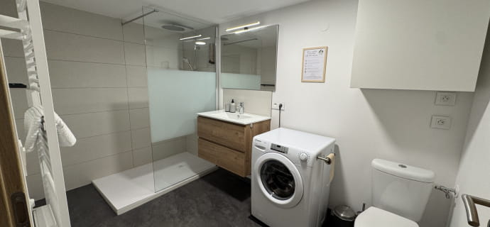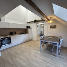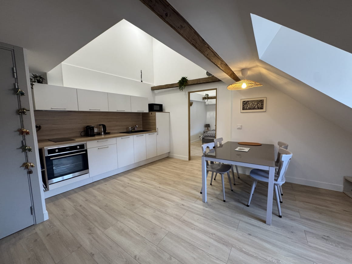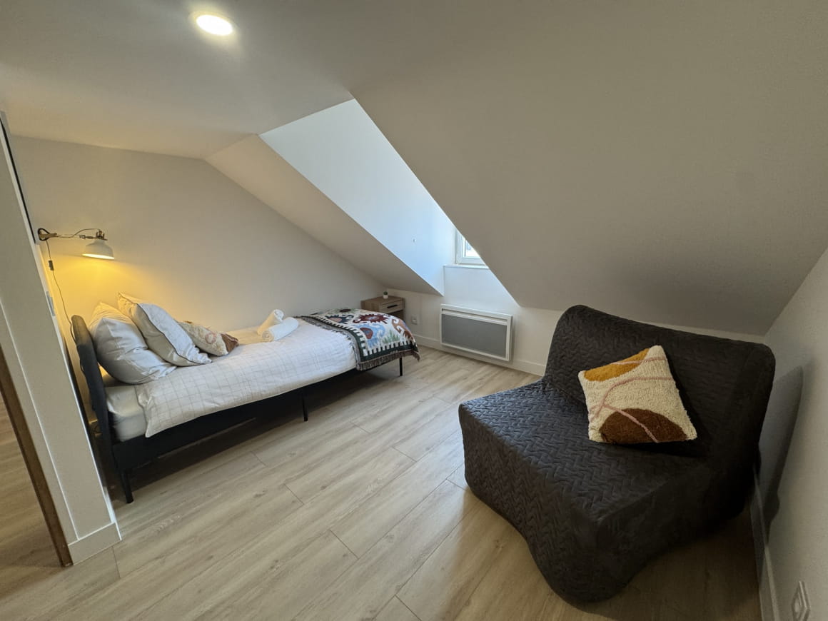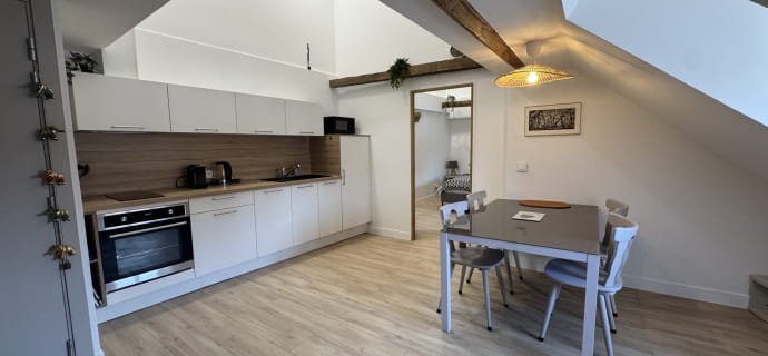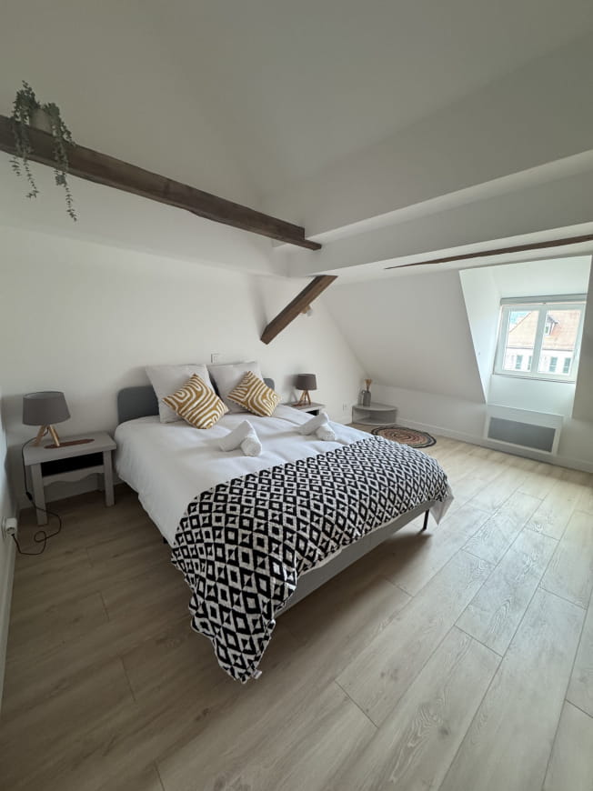 Dit gemeubileerde vakantiehuis van 80 m², genesteld op de 2ᵉ verdieping onder de daken, is geschikt voor maximaal 6 personen. Het heeft 2 comfortabele slaapkamers, een volledig uitgeruste keuken, een lichte woonkamer met slaapbank en een moderne badkamer met inloopdouche. Je profiteert ook van een ruim kantoor voor telewerken, hoogwaardige glasvezel Wi-Fi-toegang en een connected tv met 140 kanalen en Amazon Prime.