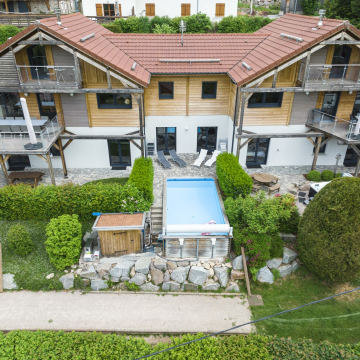 Chalets voor 12 tot 14 personen met privéjacuzzi en buitenzwembad in het hart van Gérardmer in de Vogezen.