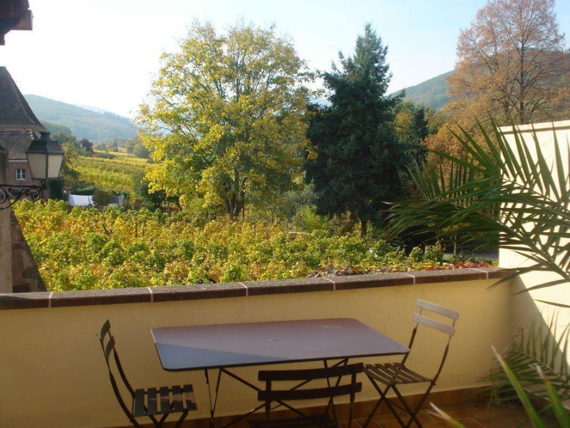 - La vue imprenable sur les sentiers de vignes et le massif des Vosges