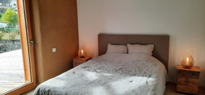 De gîte heeft 2 slaapkamers, ontworpen volgens bioklimatologische principes om een hoog niveau van thermisch comfort te garanderen. Een van de slaapkamers heeft directe toegang tot het terras, zodat je kunt genieten van een bucolisch landschap zodra de zon opkomt.