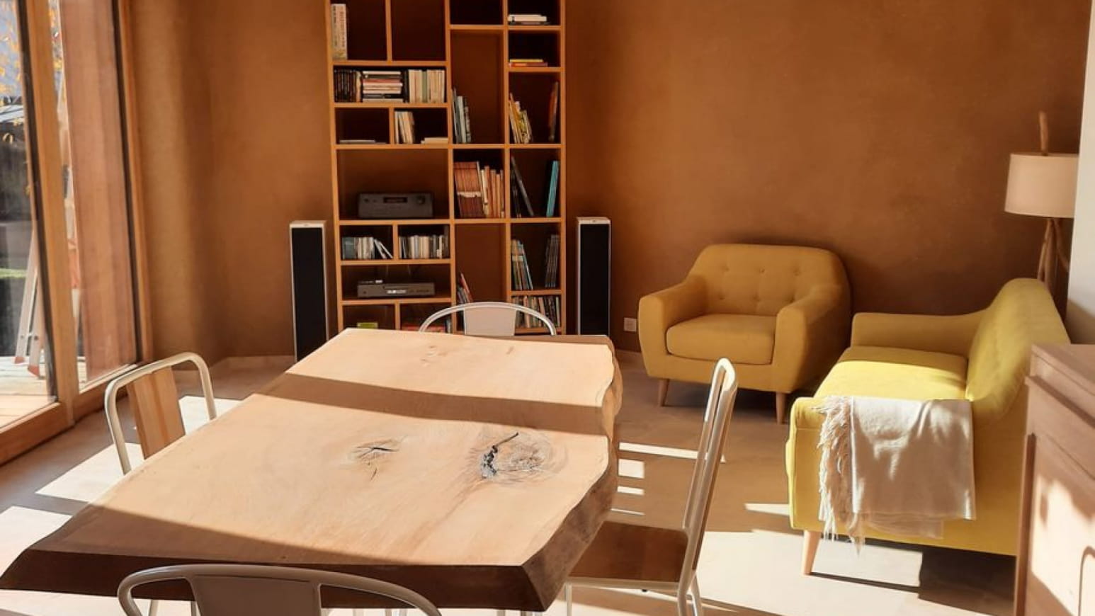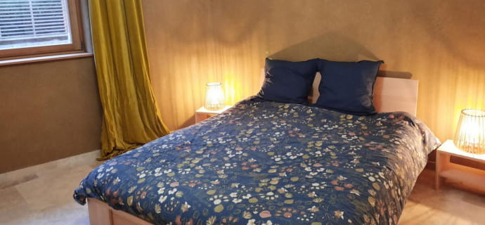 Au Blé Dormant, gewaardeerd met 4 épis door Gîtes de France, onderscheidt zich door de milieuvriendelijke constructie. Het gebruik van materialen zoals hout, stro, aarde en natuursteen creëert een sfeer die zowel warm als elegant is, met details die zorgvuldig zijn uitgedacht voor je welzijn.