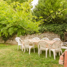 Er is een overdekt terras met tuinmeubels, zithoek, barbecue/plancha, ligstoelen. Buitenspelen voor kinderen, schommels, trampoline, tafeltennis/babyvoetbaltafel. Afgesloten parkeerplaats op het terrein. Opgemaakte bedden. Verwarming inbegrepen in de prijs van het verblijf. Schoonmaakpakket op aanvraag aan het eind van het verblijf: € 100.