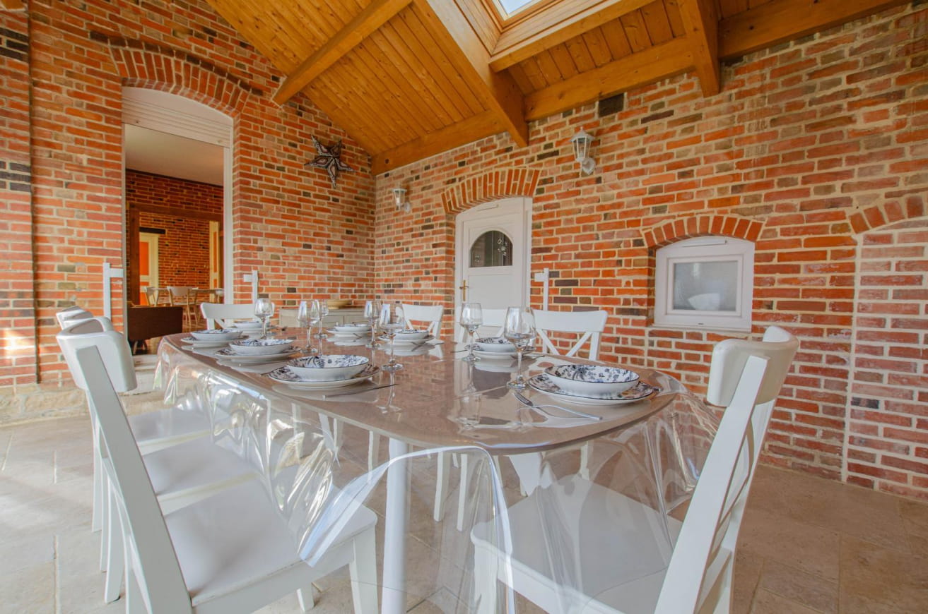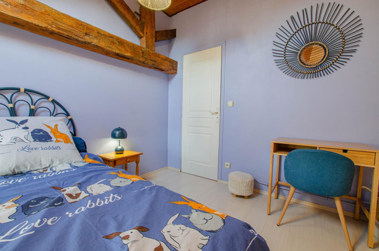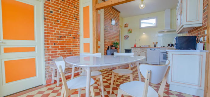 Op de begane grond biedt de gite een keuken met eethoek, een woonkamer, een lichte eetkamer in de serre, een tweepersoonsslaapkamer (bed 160×200), een badkamer (douche + bad + dubbele wastafel) en een aparte wc met wastafel. Boven vind je een tweepersoonskamer (160×200 bed), een eenpersoonskamer (90×190 bed) en een driepersoonskamer (3 90×190 bedden) met televisie. Op de overloop is een ontspannings-/gameruimte met fauteuils en een bibliotheek, ideaal voor kinderen. Buiten is er parkeergelegenheid voor het huis, een omheinde tuin met tuinmeubilair, parasol, barbecue en ligstoelen. Om uw verblijf aangenamer te maken, zijn de bedden opgemaakt bij aankomst, zijn handdoeken en huishoudlinnen aanwezig, zijn de nutsvoorzieningen inbegrepen en is de eindschoonmaak inbegrepen.