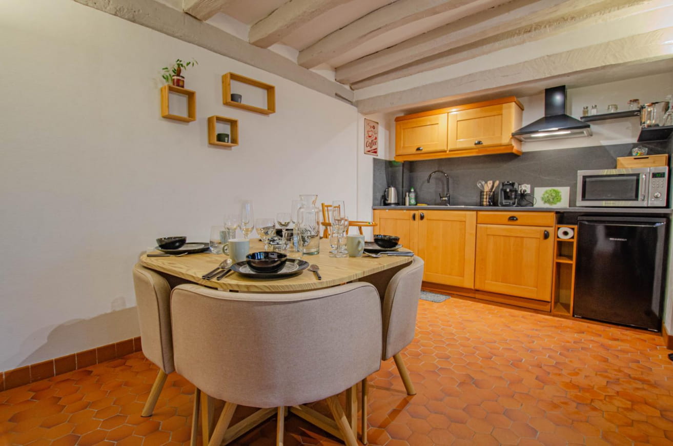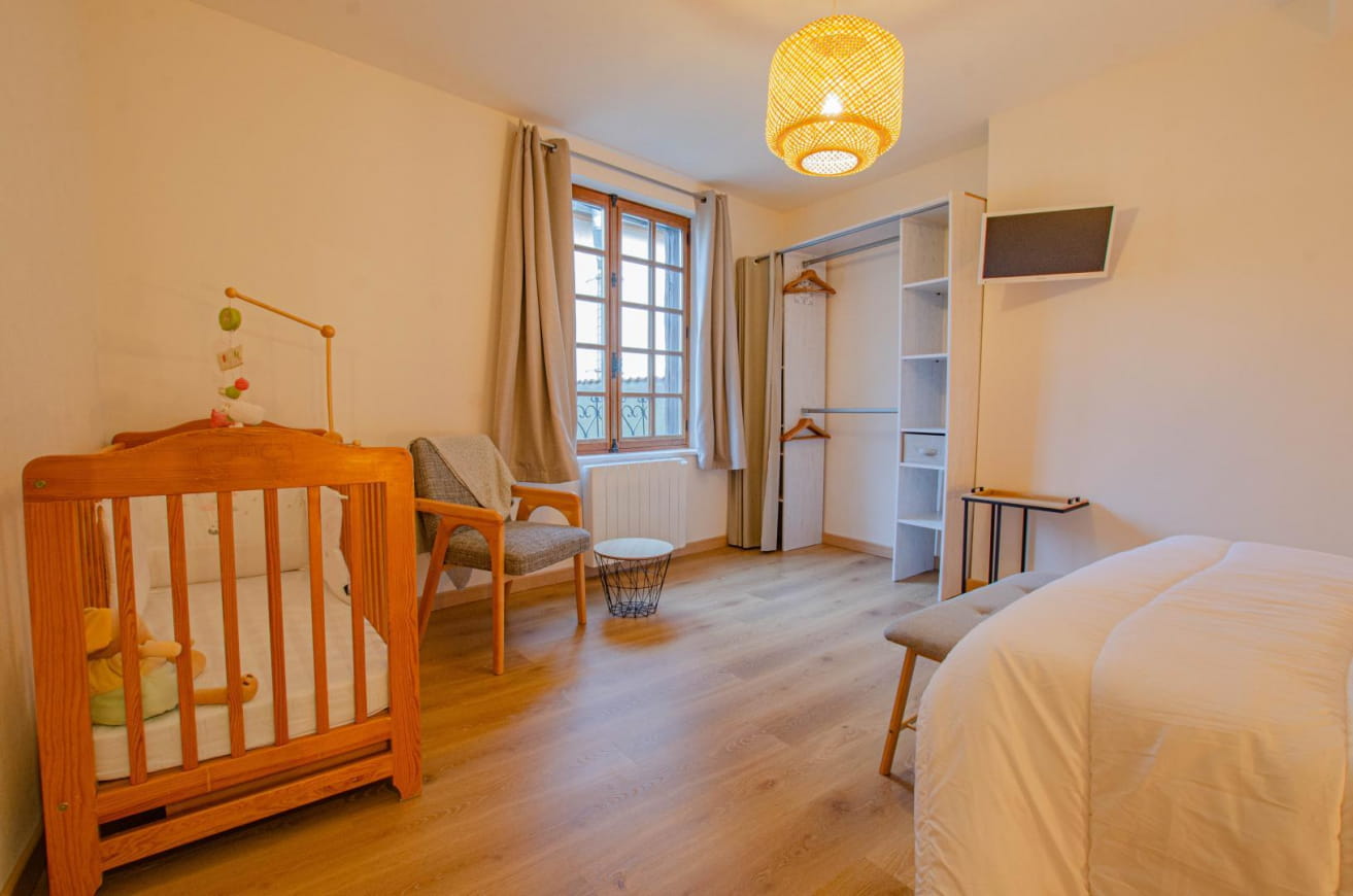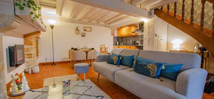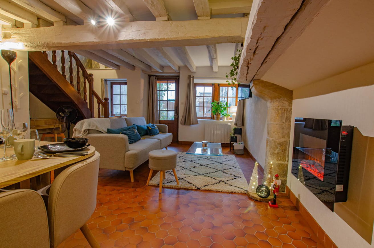 Op de begane grond vind je een woonkamer met slaapbank (toeslag €10/nacht/persoon), tv, decoratieve elektrische open haard, eethoek, volledig uitgeruste keuken en kantoor/telewerkruimte. Boven vind je een tweepersoonskamer (bed 140×190) met een babyhoek (extra bed mogelijk voor een ouder kind), een badkamer (bad + wastafel + cosmetica) en een apart toilet. Buiten geniet je van een volledig omheinde privébinnenplaats met tuinmeubelen en parasol, een barbecue, een zithoek en ligstoelen. Fietsen en scooters zijn ook beschikbaar. Om je verblijf zo aangenaam en comfortabel mogelijk te maken, is alles inbegrepen in de prijs van je verblijf (opgemaakte bedden, handdoeken, huishoudlinnen, verwarming, elektriciteit en schoonmaak), behalve de toeslag voor huisdieren (€5/dag/dier). Parkeren in de straat met een schijf die u van de eigenaren krijgt of gratis parkeren zonder schijf op 50 meter afstand.