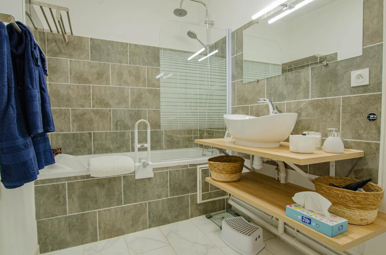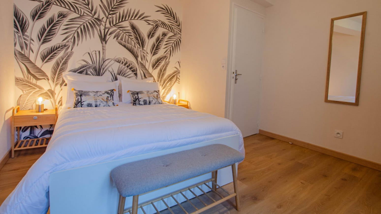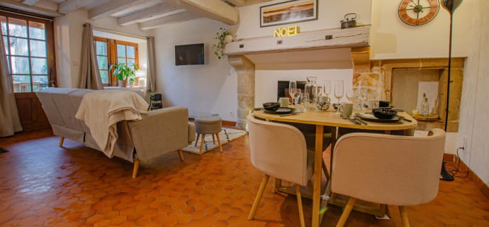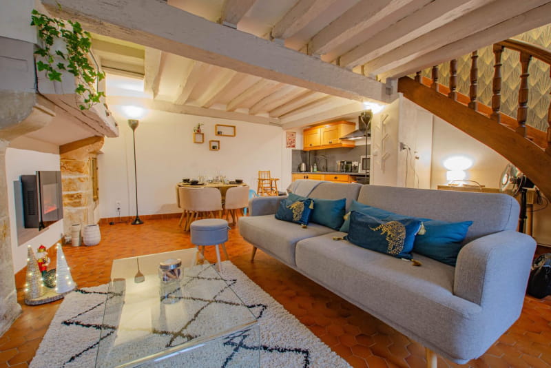 Op de begane grond vind je een woonkamer met slaapbank (toeslag €10/nacht/persoon), tv, decoratieve elektrische open haard, eethoek, volledig uitgeruste keuken en kantoor/telewerkruimte. Boven vind je een tweepersoonskamer (bed 140×190) met een babyhoek (extra bed mogelijk voor een ouder kind), een badkamer (bad + wastafel + cosmetica) en een apart toilet. Buiten geniet je van een volledig omheinde privébinnenplaats met tuinmeubelen en parasol, een barbecue, een zithoek en ligstoelen. Fietsen en scooters zijn ook beschikbaar. Om je verblijf zo aangenaam en comfortabel mogelijk te maken, is alles inbegrepen in de prijs van je verblijf (opgemaakte bedden, handdoeken, huishoudlinnen, verwarming, elektriciteit en schoonmaak), behalve de toeslag voor huisdieren (€5/dag/dier). Parkeren in de straat met een schijf die u van de eigenaren krijgt of gratis parkeren zonder schijf op 50 meter afstand.