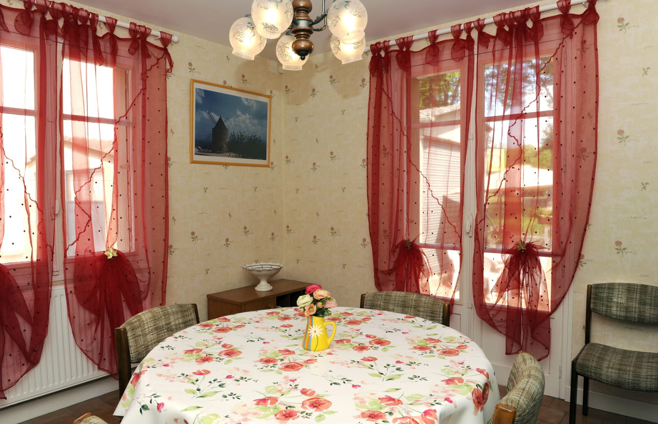 Begane grond: eetkamer, woonkamer, keuken, slaapkamer (1 tweepersoonsbed), badkamer met douche, WC. Eerste verdieping: een slaapkamer (1 tweepersoonsbed), een slaapkamer (2 eenpersoonsbedden), badkamer met douche, WC. Tafeltennis en jeu de boules. Bijkomende kosten: elektriciteit en gasverwarming.