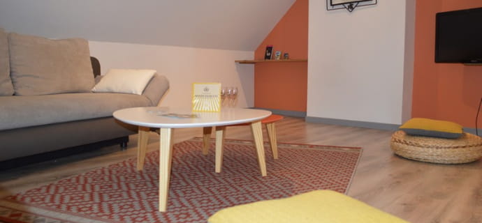 Le Clos de Renée" is een compleet appartement. Het is modern en gezellig ingericht en bestaat uit een slaapkamer, een comfortabele woonkamer, een eigen badkamer en een keuken. De slaapkamer heeft een tweepersoonsbed en een slaapbank. Er is ook een tweede slaapbank in de woonkamer. De gîte is dus geschikt voor maximaal 4 personen. De keuken is volledig uitgerust, mocht je willen koken.