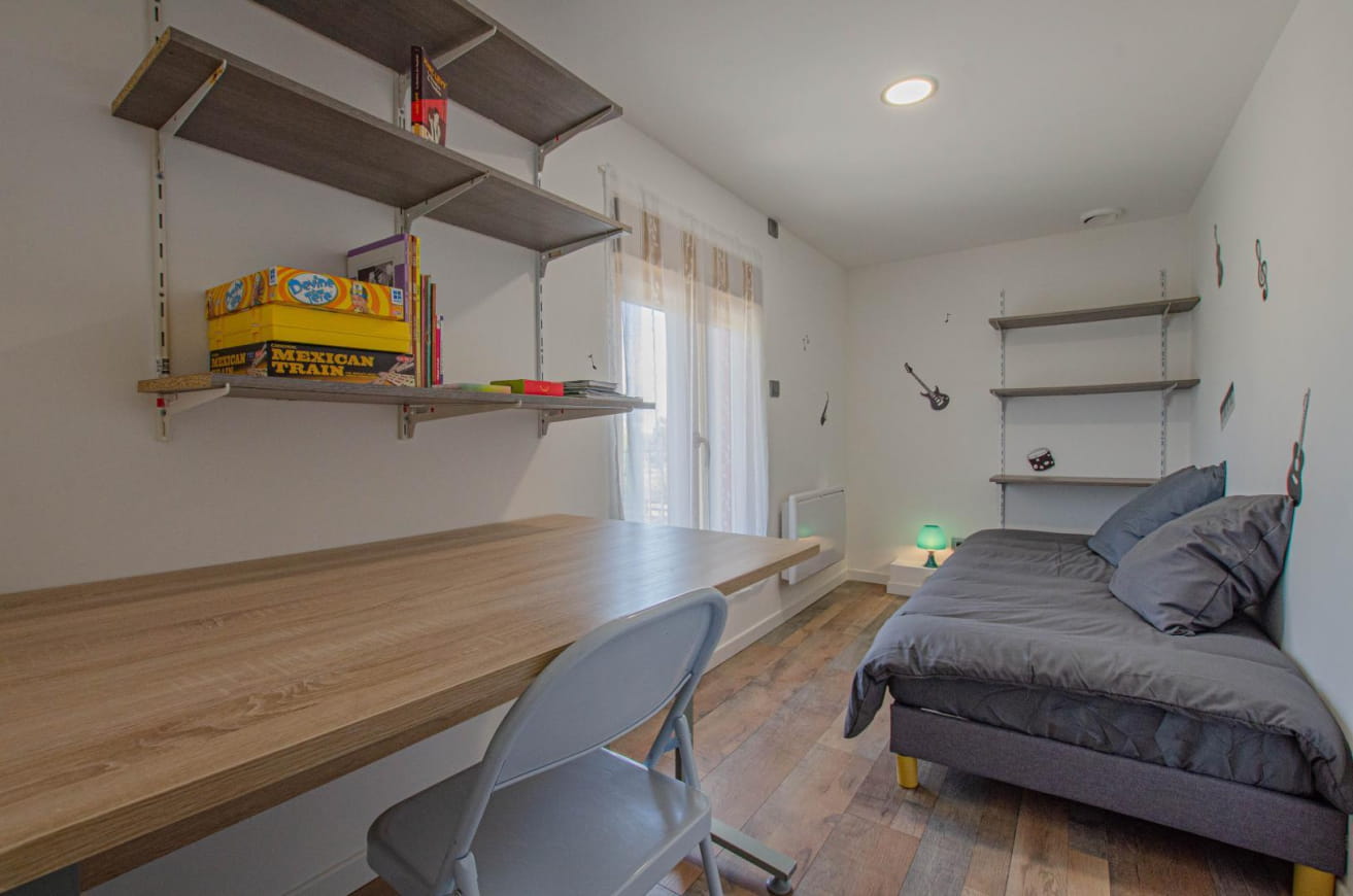 Op de begane grond vindt u een woonkamer met een ingerichte keuken die uitkomt op een salon/woonkamer, een ruime driepersoonskamer (3 bedden die kunnen worden opgemaakt tot een tweepersoonsbed of aparte bedden), een badkamer (douche, bad, dubbele wastafel), 2 aparte wc’s en een bijkeuken. Op de bovenverdieping zijn 2 tweepersoonsslaapkamers (bedden kunnen van elkaar gescheiden worden), een master suite (bed van 160×200) met eigen doucheruimte, een slaapkamer/studeerkamer (eenpersoonsbed). Buiten is er parkeergelegenheid, een privéterras (tuinmeubilair, parasol, barbecue, ligstoelen) en een trampoline. Vanaf half mei is er gratis een fitnessruimte voor de gites beschikbaar, evenals een wellnessruimte met sauna/hammam/jacuzzi/theehoek/sanitair (toeslag van € 80 voor een sessie van 2 uur). Gemeenschappelijk ZWEMBAD beschikbaar in juli/augustus. Gemeenschappelijke zaal in de buurt.