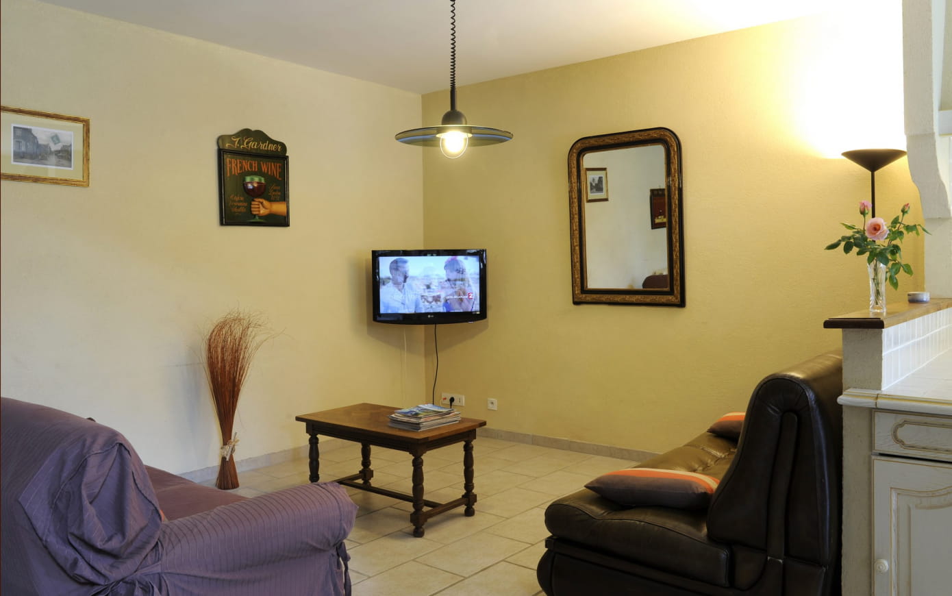 Begane grond: open keuken, woonkamer, wc. Eerste verdieping: slaapkamer (1 tweepersoonsbed 160×200), slaapkamer (2 eenpersoonsbedden + 1 uitschuifbaar bed), badkamer, wc. Omheinde tuin, parkeerplaats op het terrein, terras met tuinmeubelen, barbecue, zonnescherm. Nutsvoorzieningen inbegrepen.