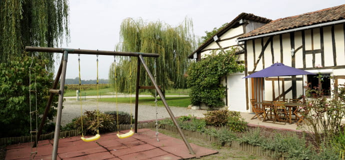 - Omheind terrein met bomen 2600 m2 met spelletjes: jeu de boules, schommel en mountainbike