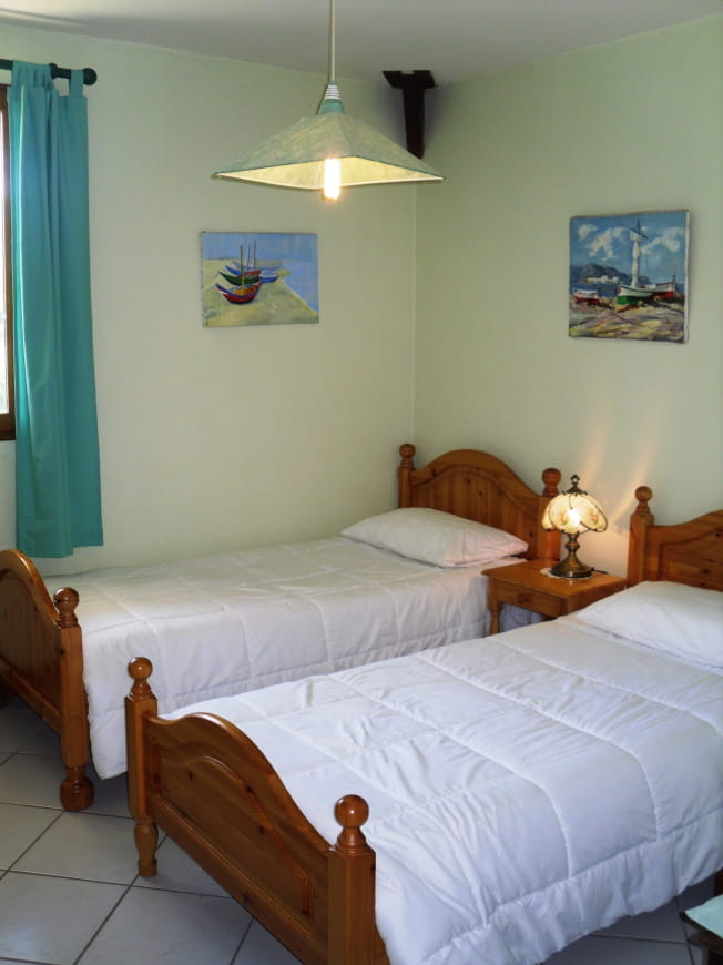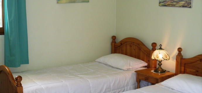Eet/woonkamer met open ingerichte keuken. Een slaapkamer (1 tweepersoonsbed), twee slaapkamers (2 eenpersoonsbedden) met en-suite badkamer met douche. Buiten: eigen tuin met gazon, omheind. Bijkomende kosten: gas en elektriciteit 5 tot 10 euro per dag afhankelijk van het seizoen (oktober / maart – april / september). Kleine huisdieren zijn toegestaan. LET OP: internetverbinding is via 3G key, waardoor maximaal 5 computers kunnen worden aangesloten.