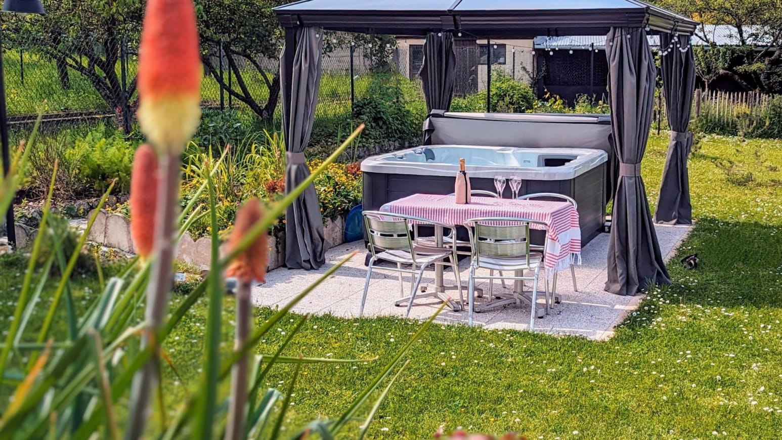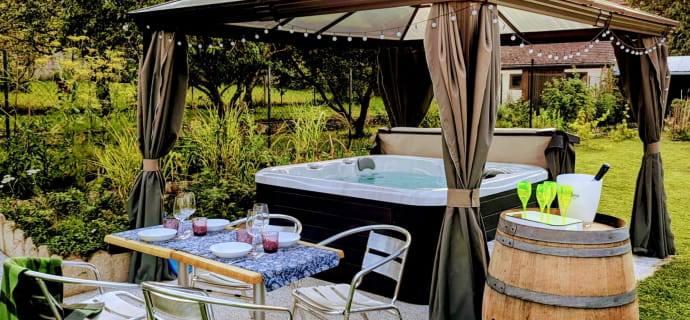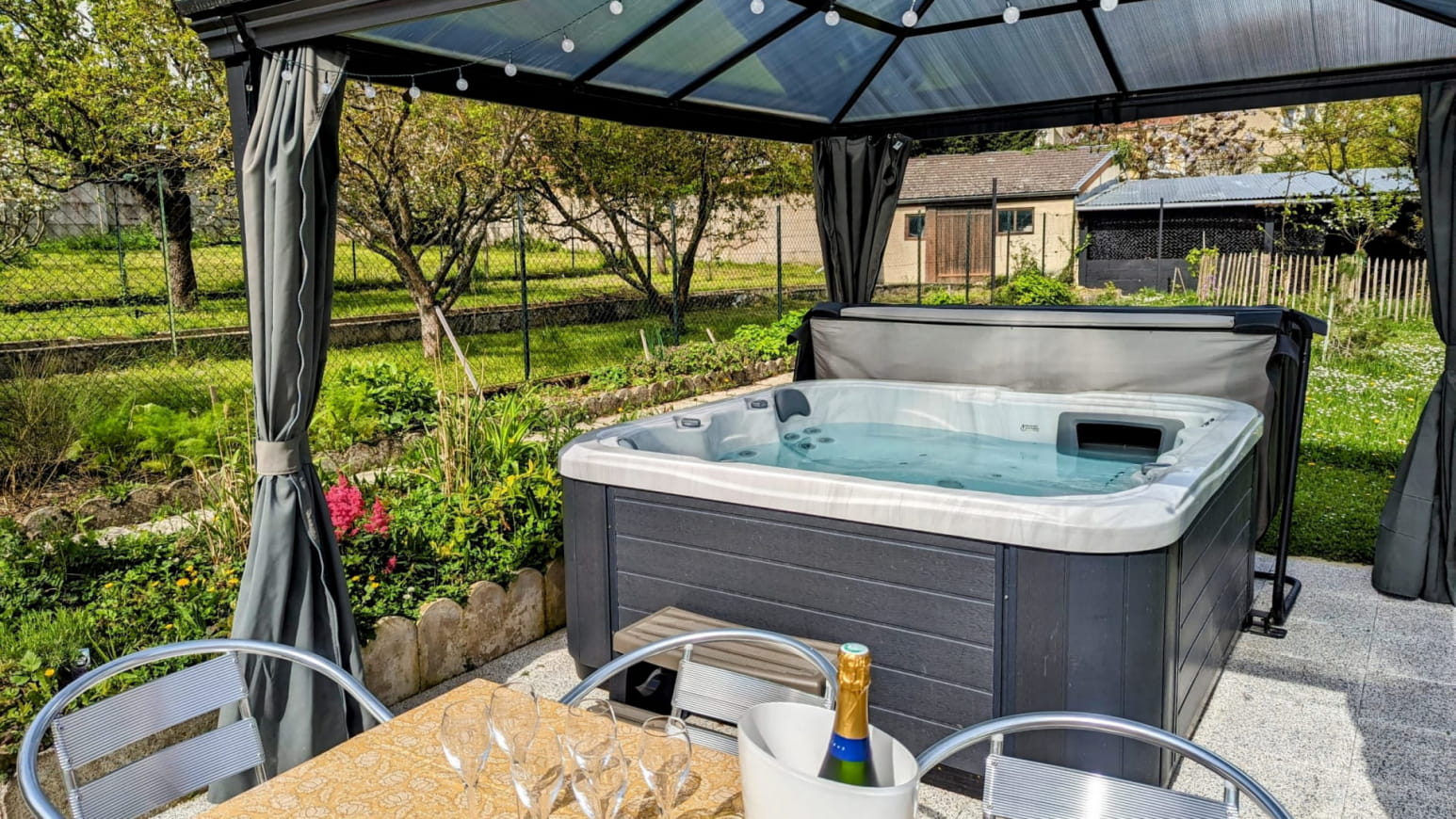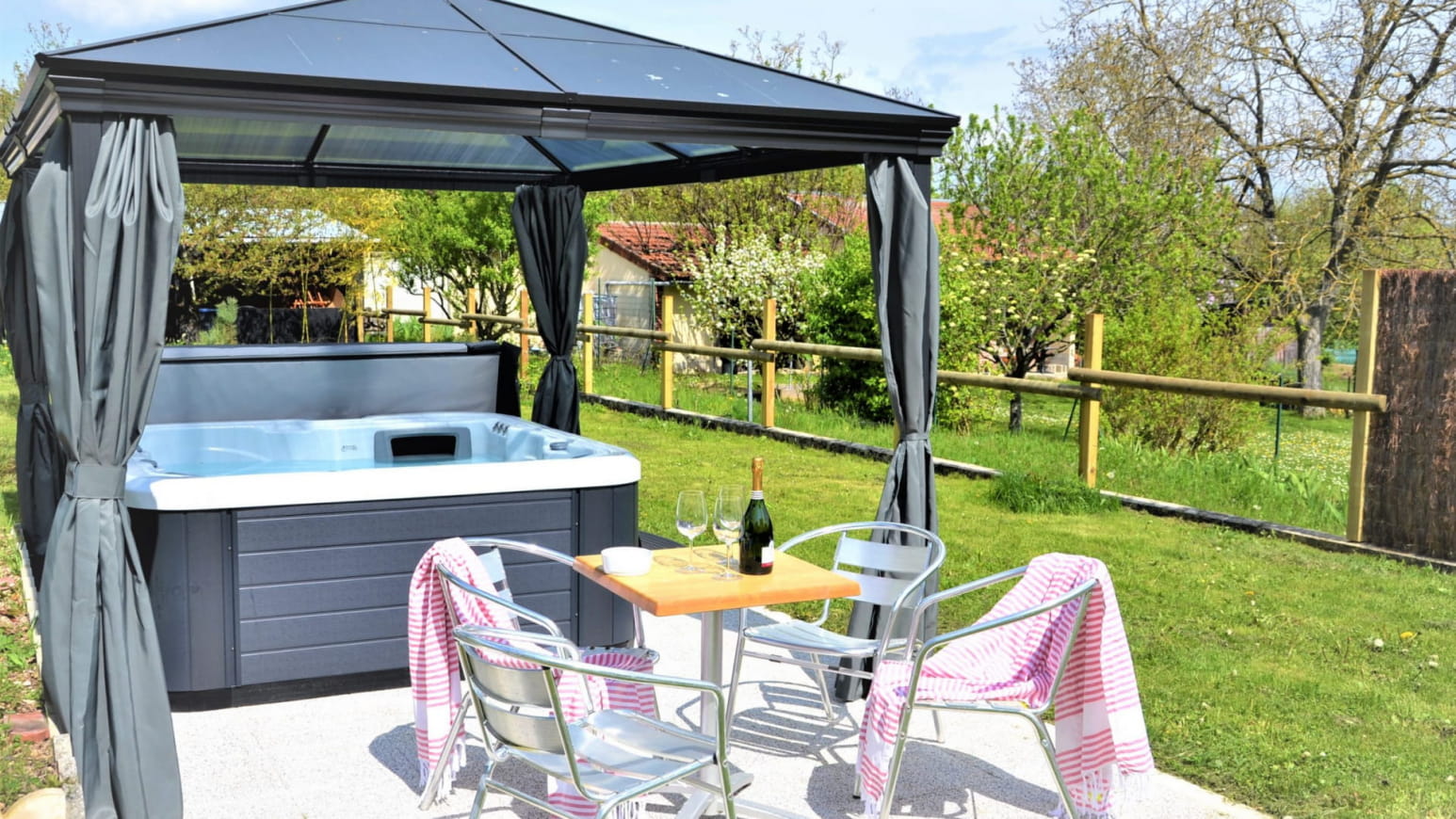 - Een eersteklas jacuzzi met 5 zitplaatsen om te genieten van de voordelen van hydrotherapie
