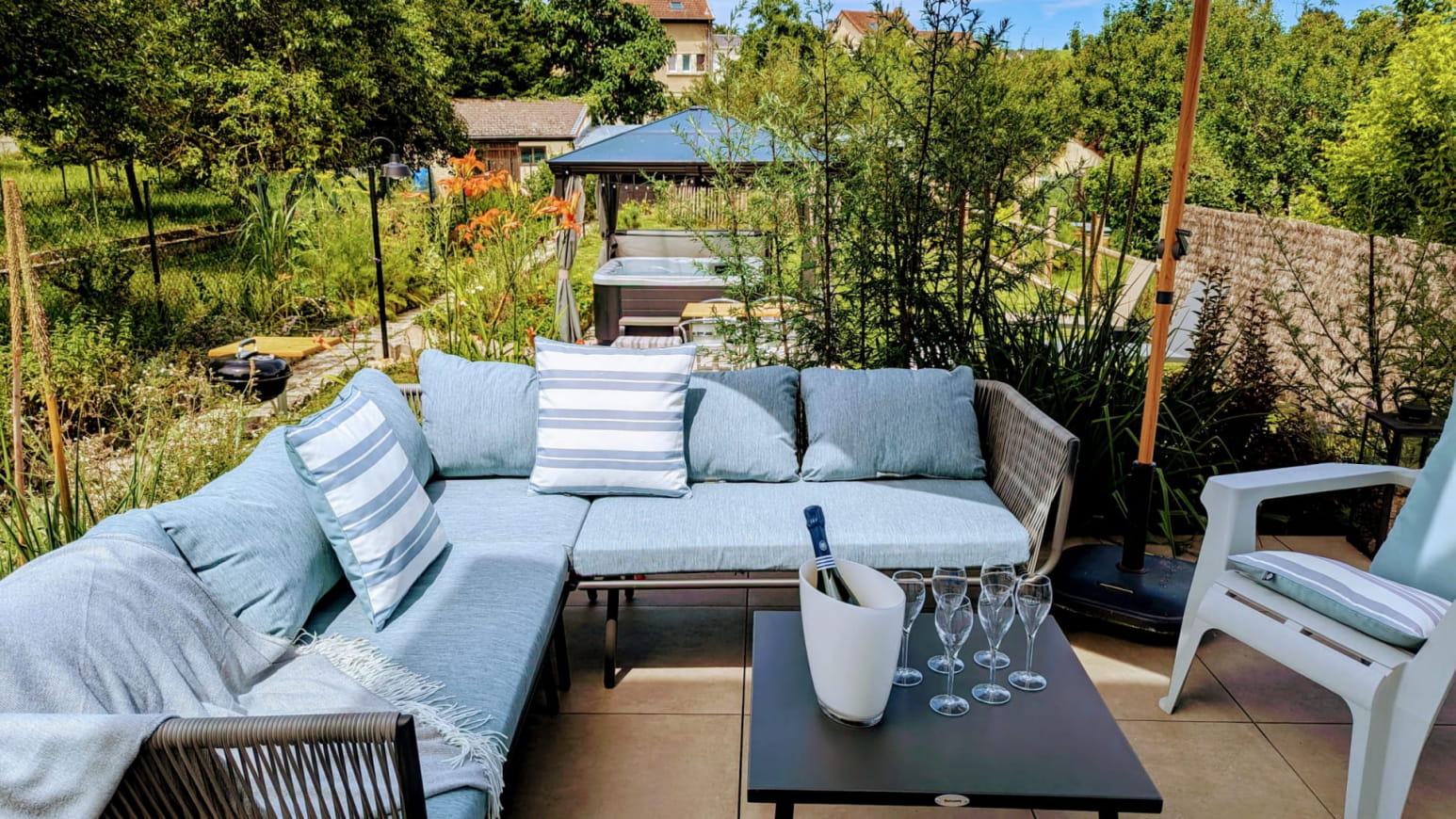 Het etablissement zet zich in voor ecologisch verantwoord toerisme en onderscheidt zich door zijn bijzondere aandacht voor milieubehoud en duurzame ontwikkeling. Een open tuin biedt een adembenemend uitzicht over de boomgaarden, de heuvels van de Champagne en de daken van Épernay. Het grote terras is ideaal om bij mooi weer van uw maaltijden te genieten, en als klap op de vuurpijl zorgt een privéjacuzzi, beschut onder een prieel, voor bijzondere momenten van balneotherapie in het hart van de tuin.