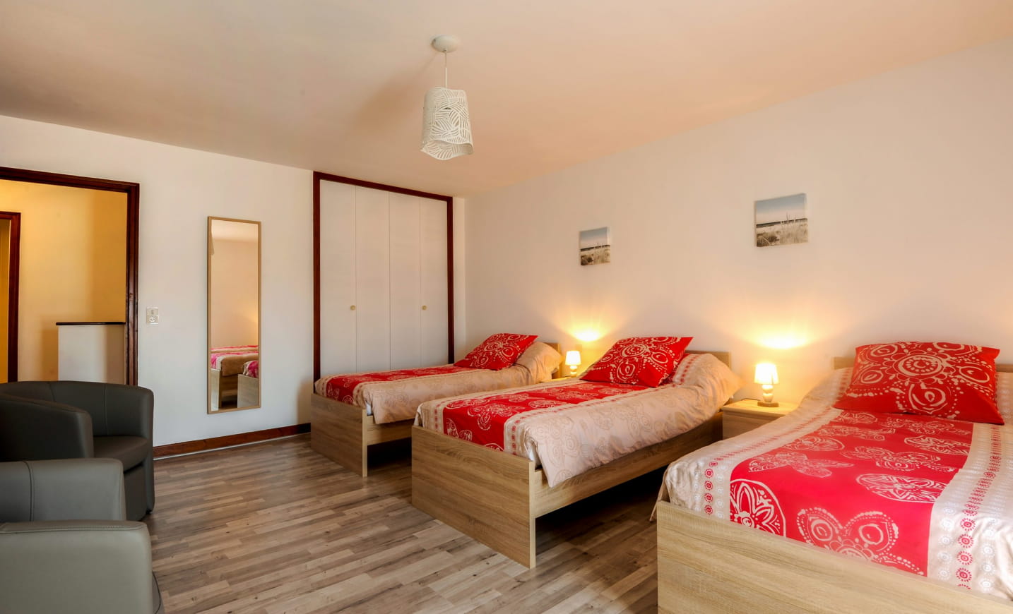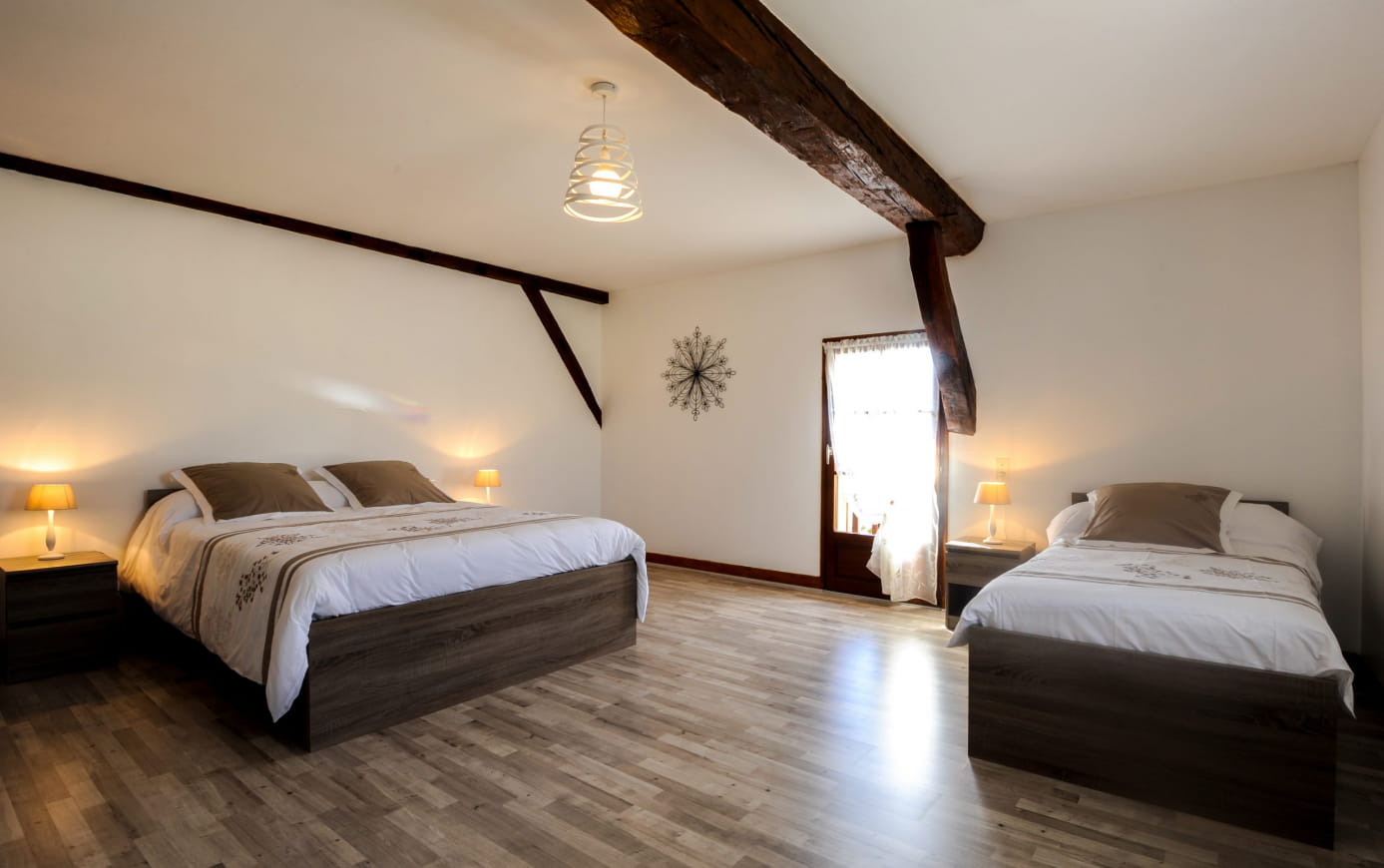 De Gîte du Cray heeft 4 slaapkamers, waarvan 1 op de begane grond en 3 op de eerste verdieping, plus 2 doucheruimtes en aparte toiletten. Als je het huis binnenkomt, vind je een grote woonkamer met een eethoek en een zithoek met een houtkachel. De goed uitgeruste keuken geeft direct uit op een bijkeuken. Als je naar boven gaat, kun je kiezen uit 1 driepersoonskamer met 3 bedden van 90×200, 1 slaapkamer voor 3 personen met 1 bed van 90×200 en 1 bed van 160×200 en 1 tweepersoonskamer met 1 bed van 160×200.