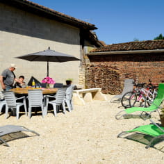 Het extraatje van deze gîte is de enorme schuur, die is omgebouwd tot kinderspeelruimte. Daag jezelf uit met een paar basketbal hoepels of maak een klein parcours voor de kleintjes. Het kan ook worden gebruikt als eetkamer voor familiemaaltijden.