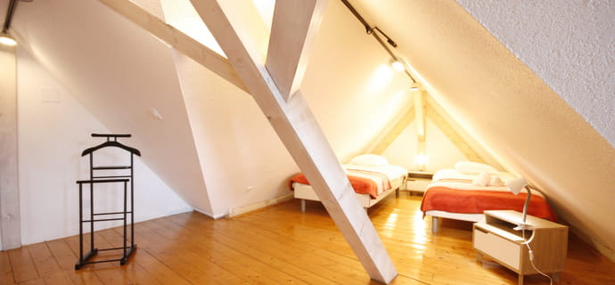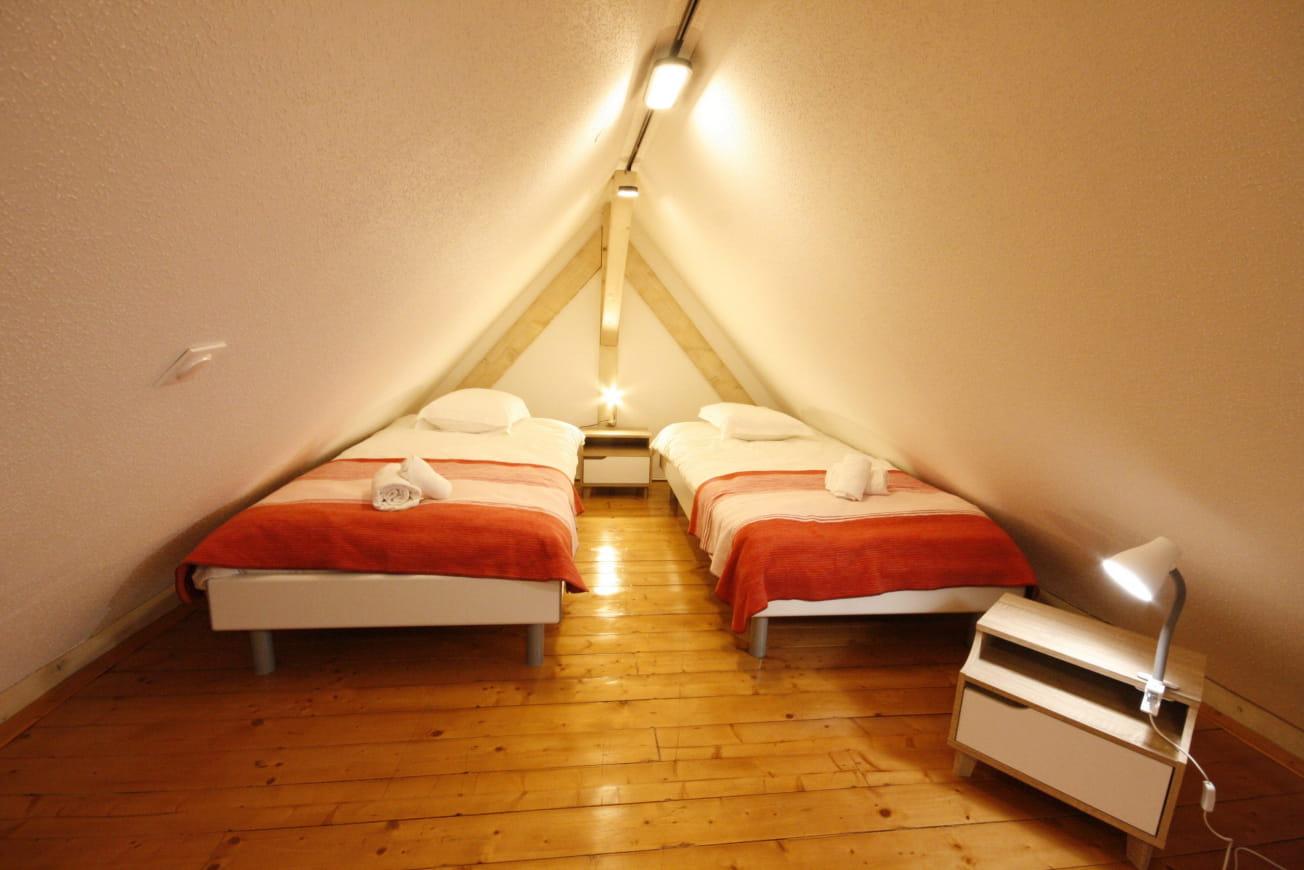 De slaapkamers verwelkomen je in een geraffineerde omgeving die bijzonder geschikt is om te ontspannen. De eerste heeft een tweepersoonsbed en geeft uit op een serene binnenplaats. De tweede, op zolder, heeft 2 eenpersoonsbedden en airconditioning voor een rustige nachtrust in elk seizoen.